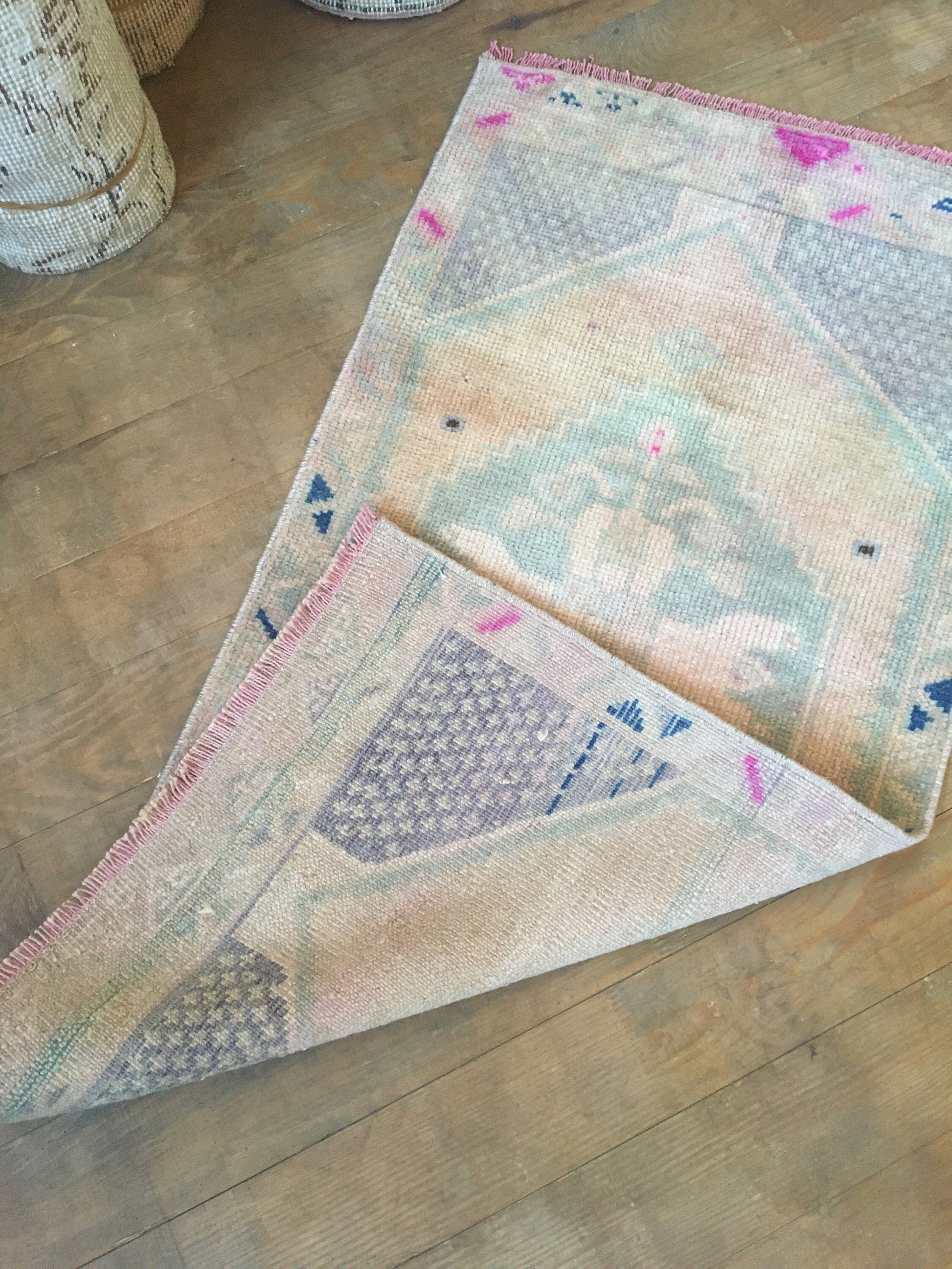 1.6 x 3.1 feet handmade small turkish rug, mini bathroom floor rug, vintage oushak rugs