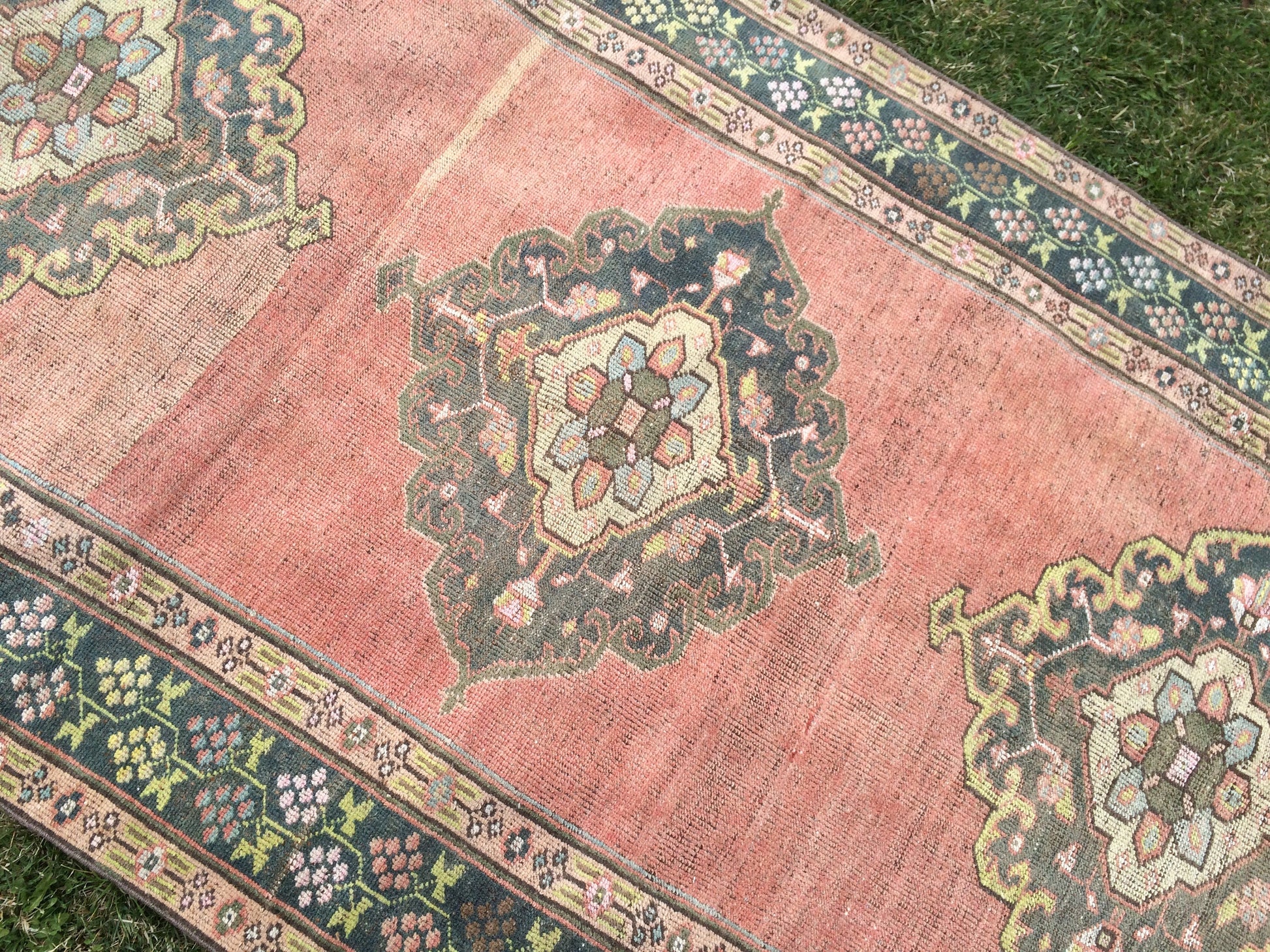 *A vintage handmade Turkish rug made of hand spun wool and double knotted on sturdy cotton foundation,