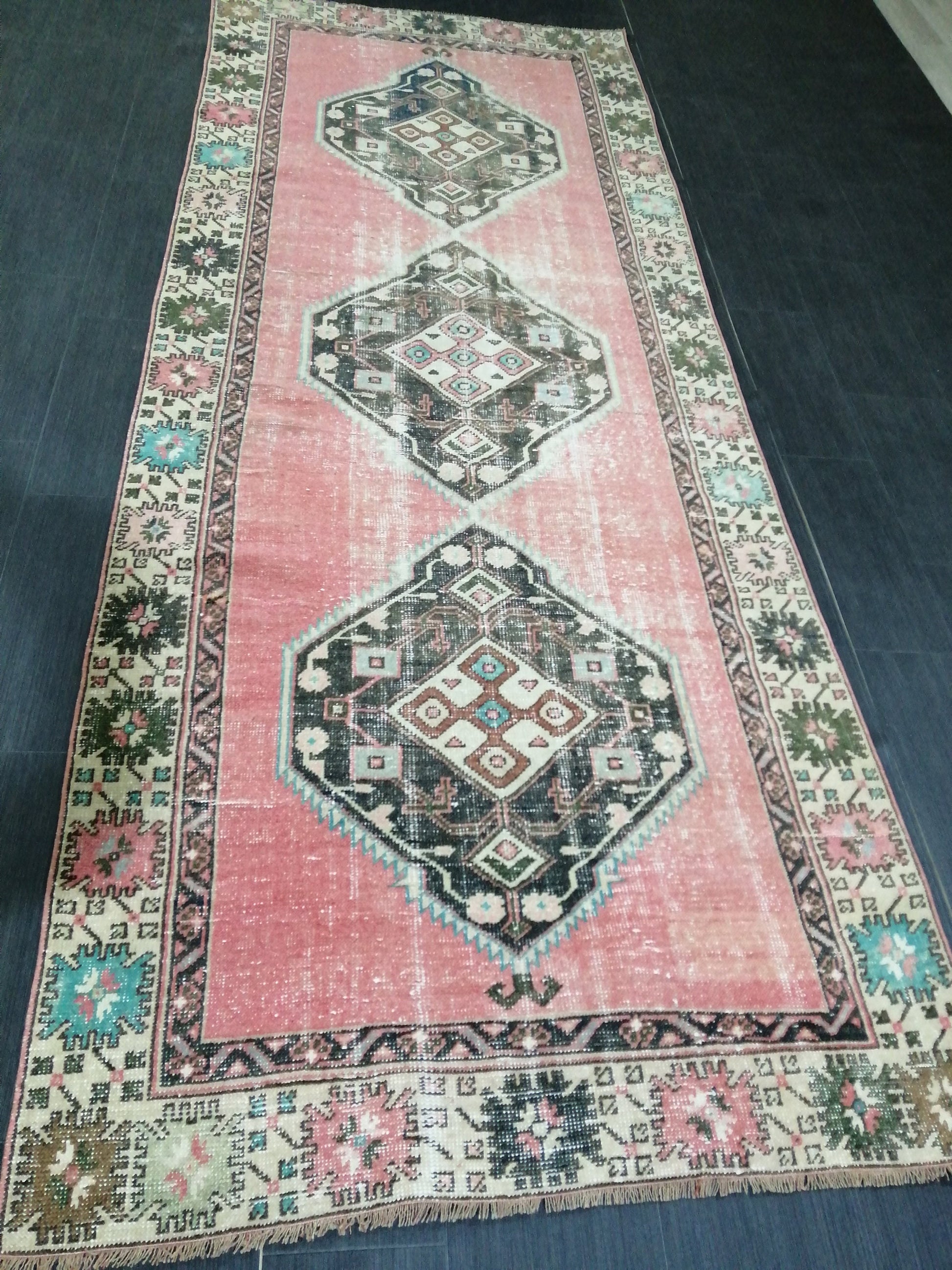 10.4 x 4 Oushak Runner Rug Turkish Runner Rug Vintage Runner Rug Hallway Runner Rug Kitchen Runner Rug Wool Runner Rug Wool Oushak Rug