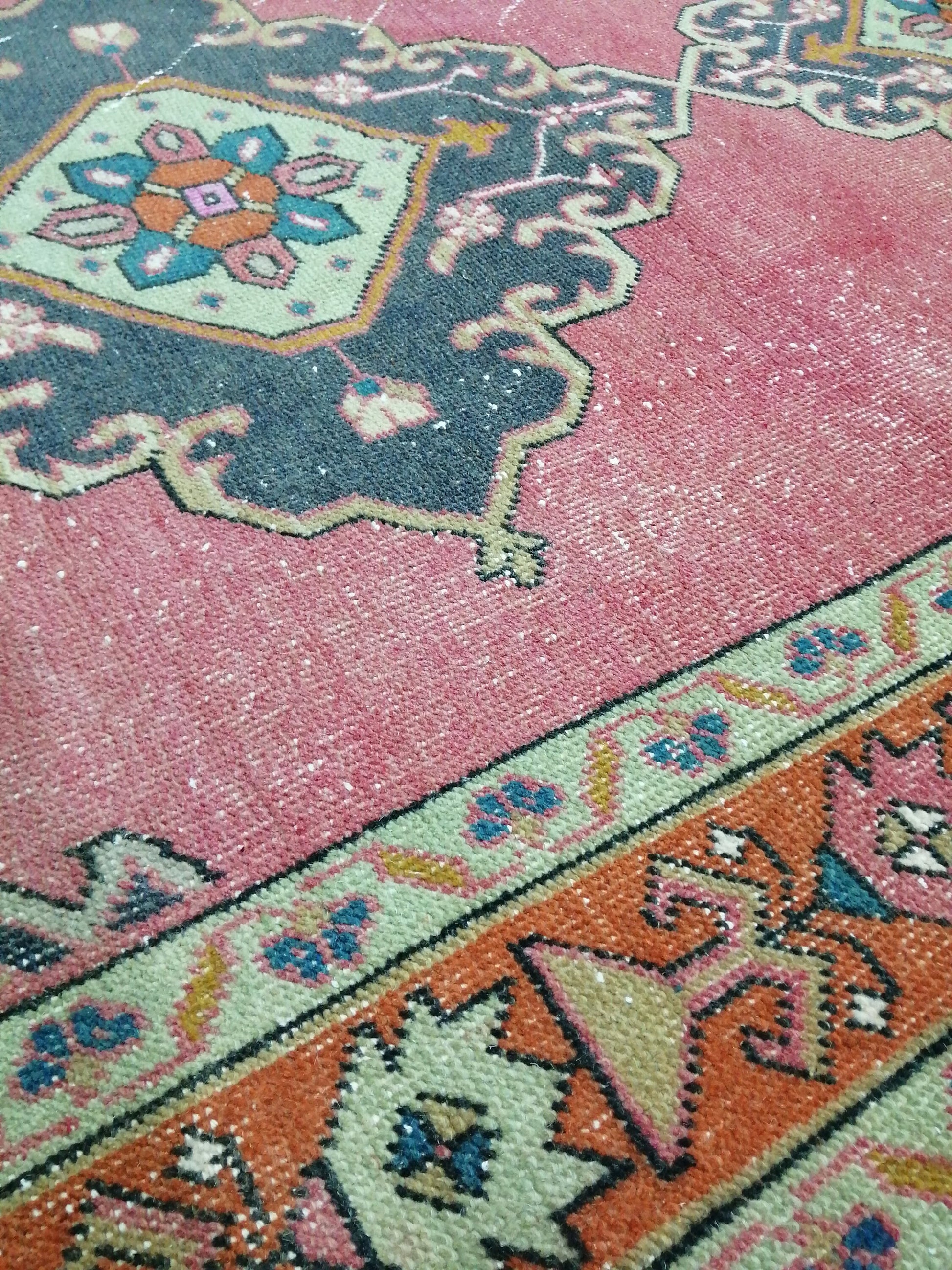 *A vintage handmade Turkish rug made of hand spun wool and double knotted on sturdy foundation,
