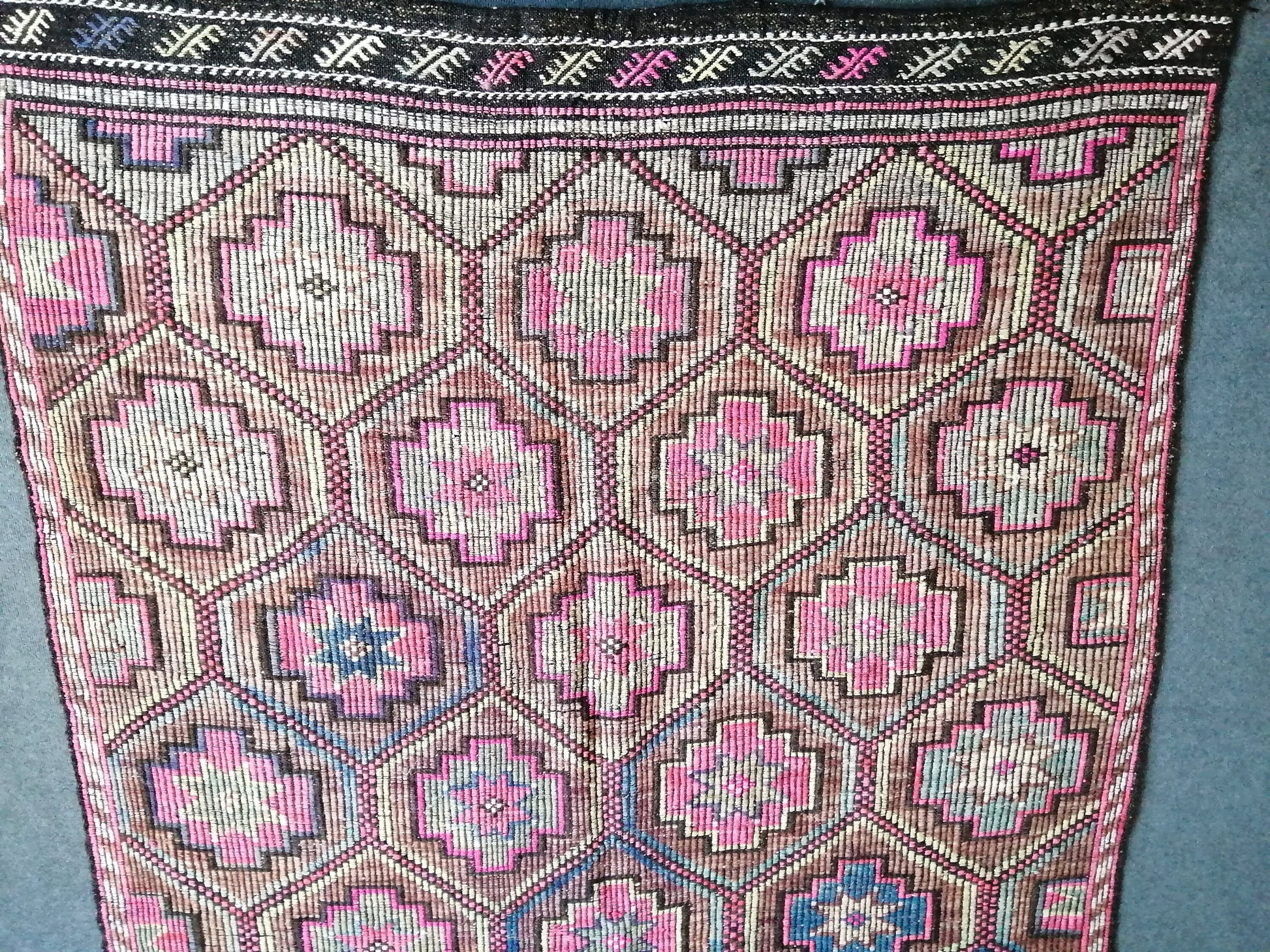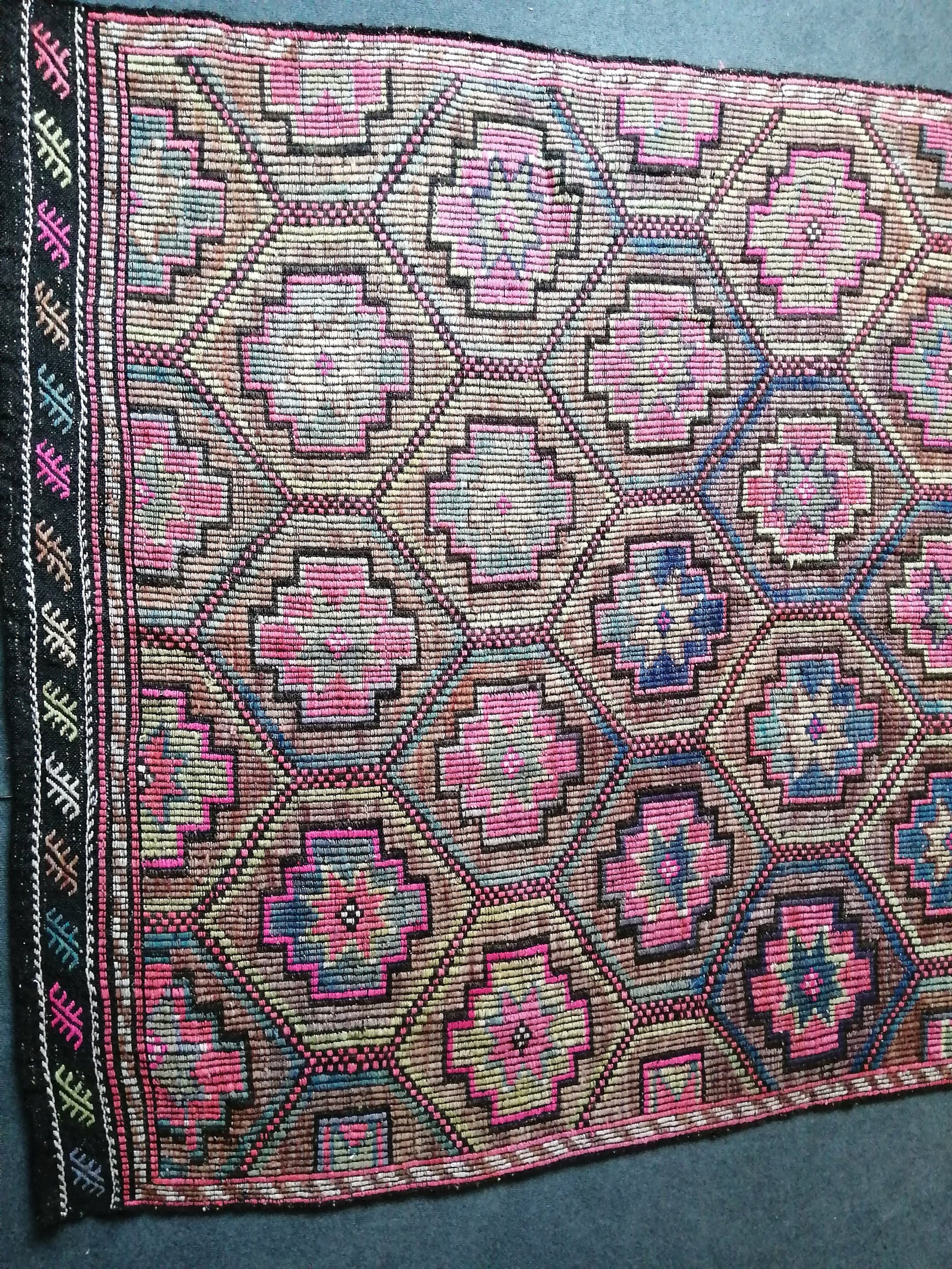 FLATWOVEN KILIM WITH WOOL EMBROIDERY ON TOP OF GOAT HAIR BASE