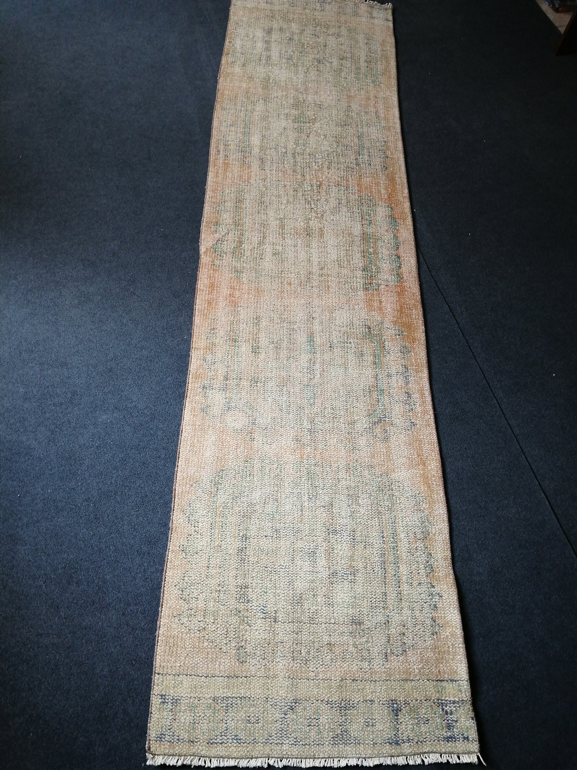 11 x 2.8 Low Wool Pile Oushak Runner Rug Turkish Runner Rug Vintage Runner Rug Hallway Runner Rug Kitchen Runner Rug Wool Runner Rug Wool