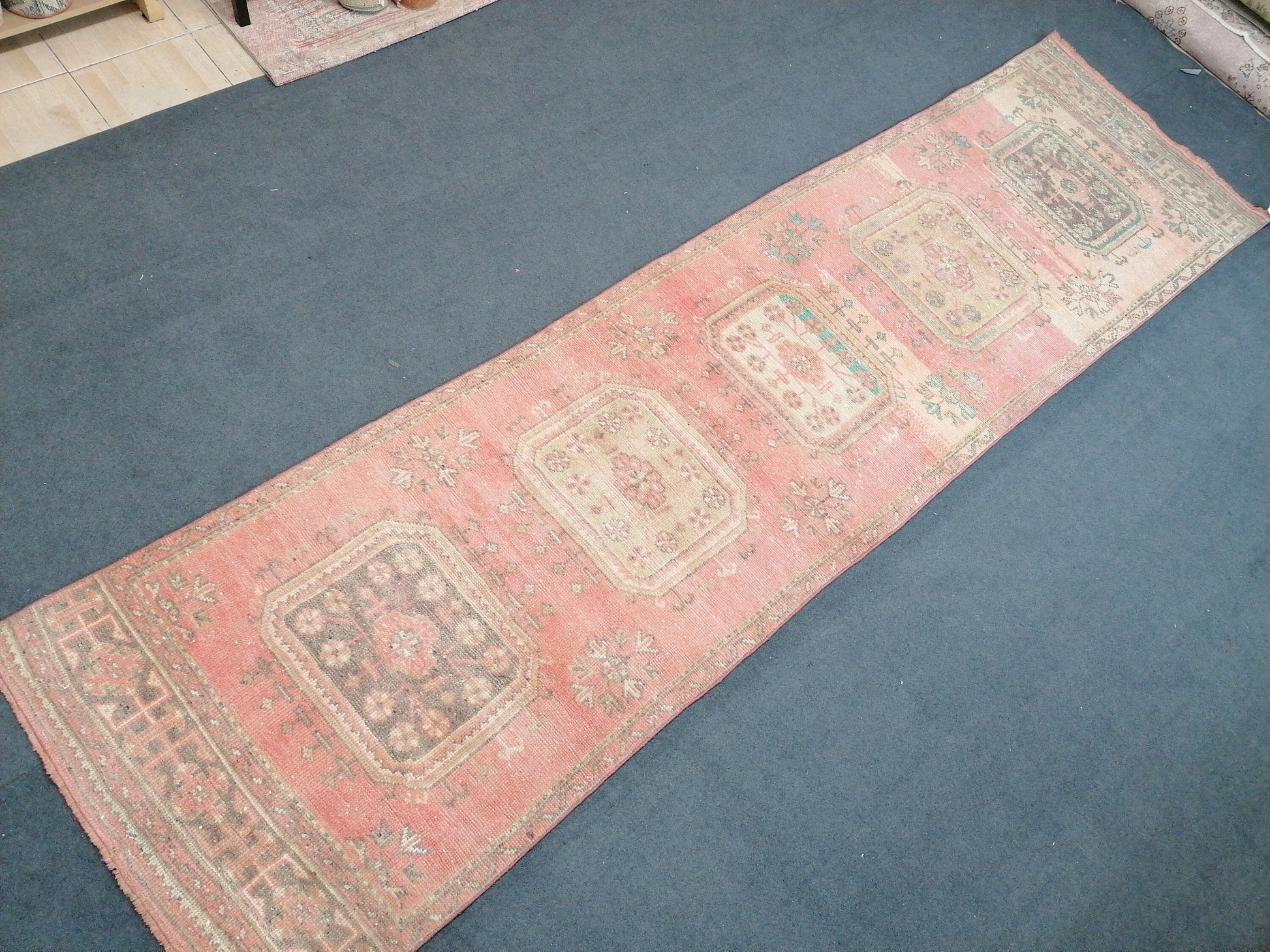 11'10x3'2 oushak runner rug,turkish runner rug, vintage runner rug vintage oushak runner rug, unique hand made rug kitchen runner rug