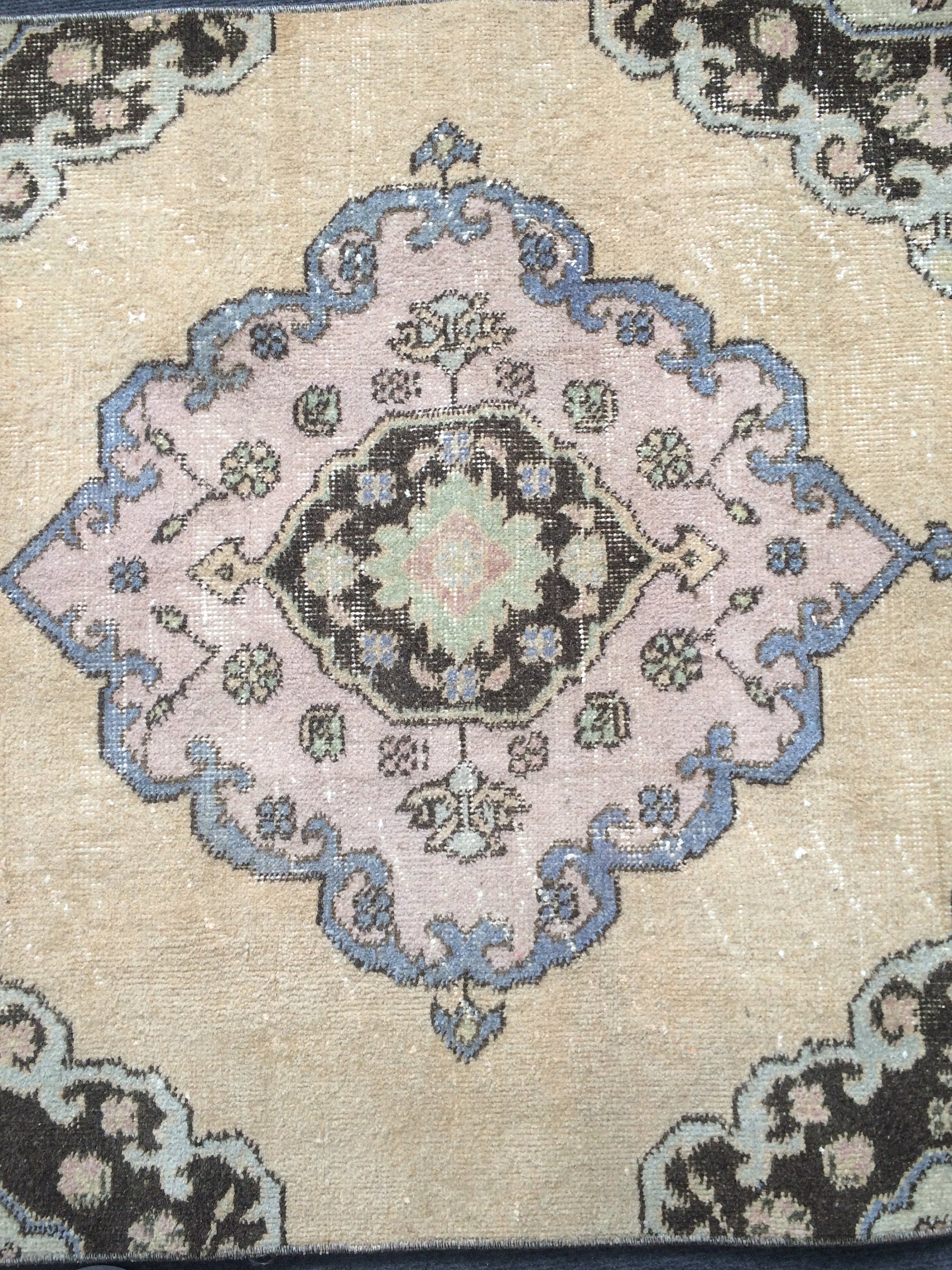 *A vintage handmade Turkish rug made of hand spun wool and double knotted on sturdy cotton foundation,