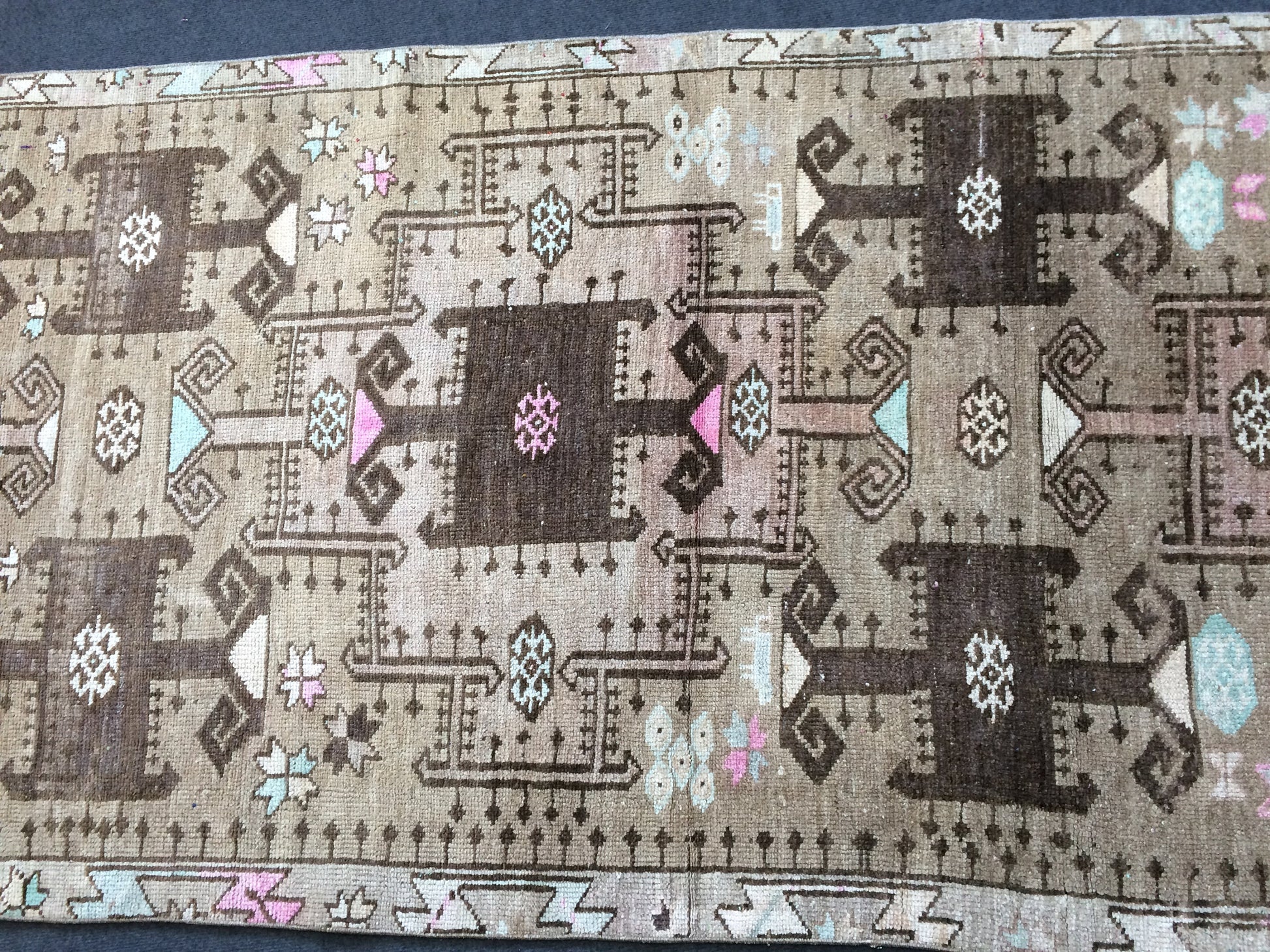 *A vintage handmade Turkish rug made of hand spun wool and double knotted on sturdy cotton foundation,
