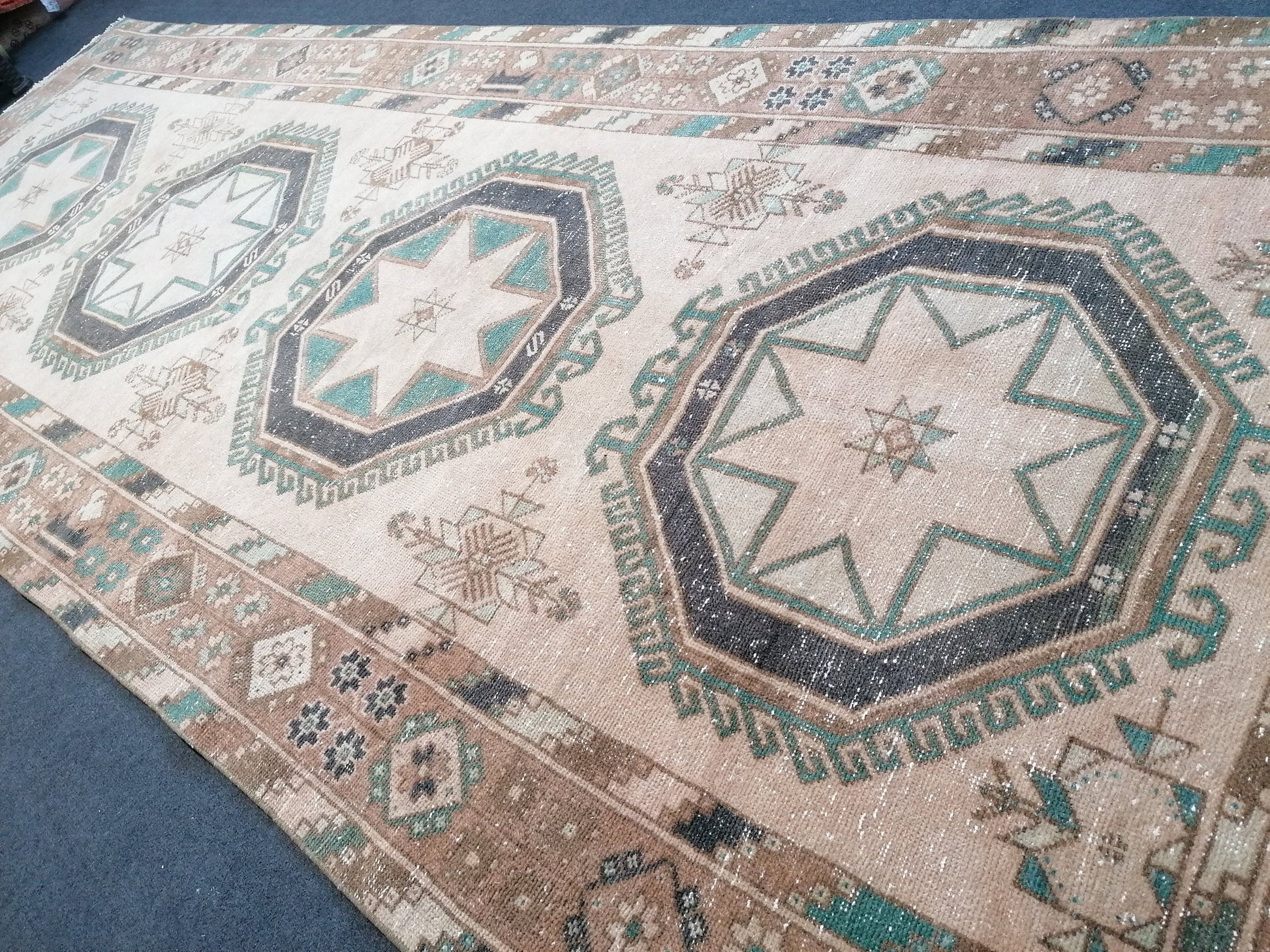 12'7x4'8 oushak turkish runner rug, vintage turkish runner rug, oushak vintage rug,vintage rug,kitchen rug, vintage anatolian rug, hand made