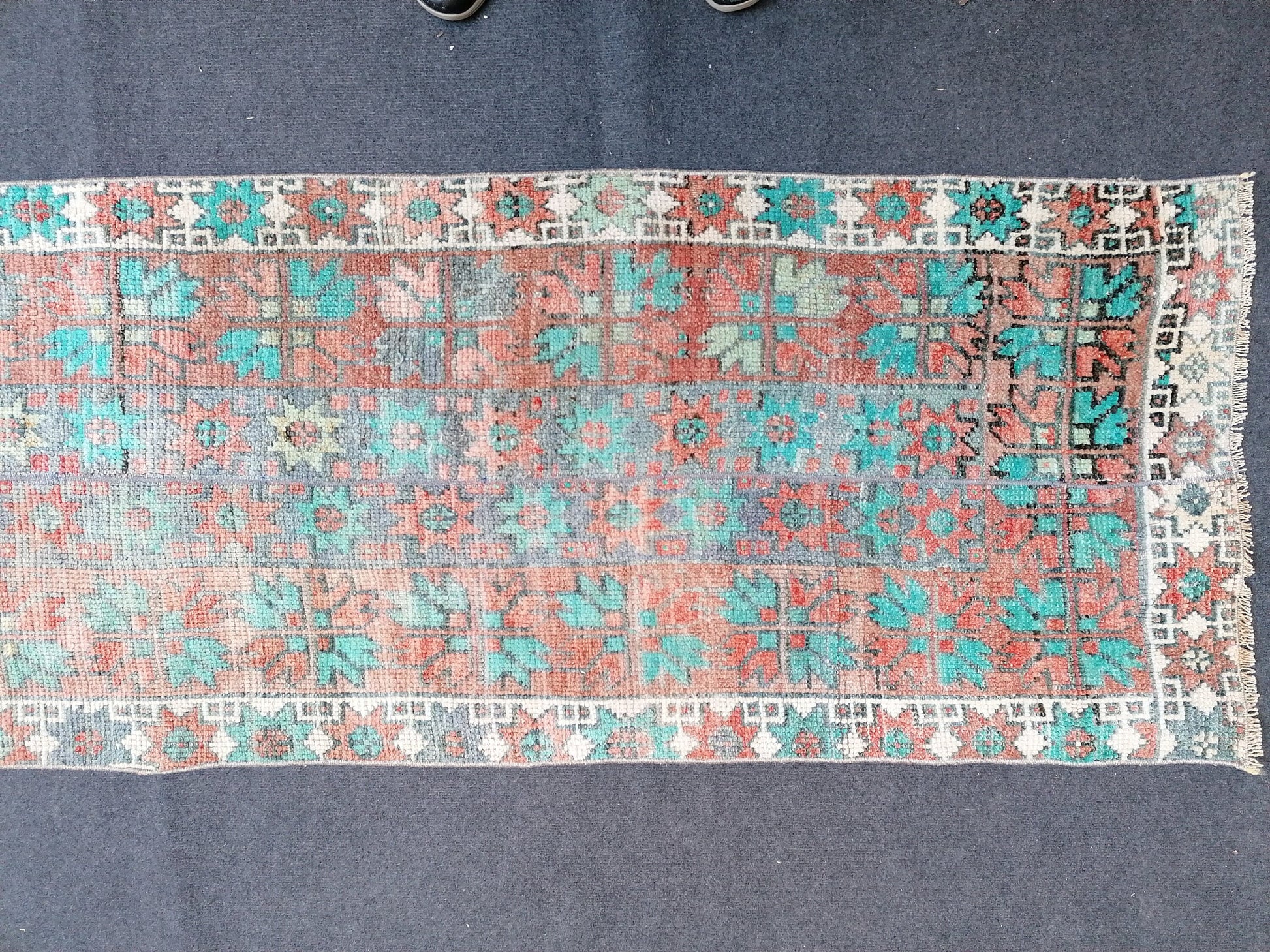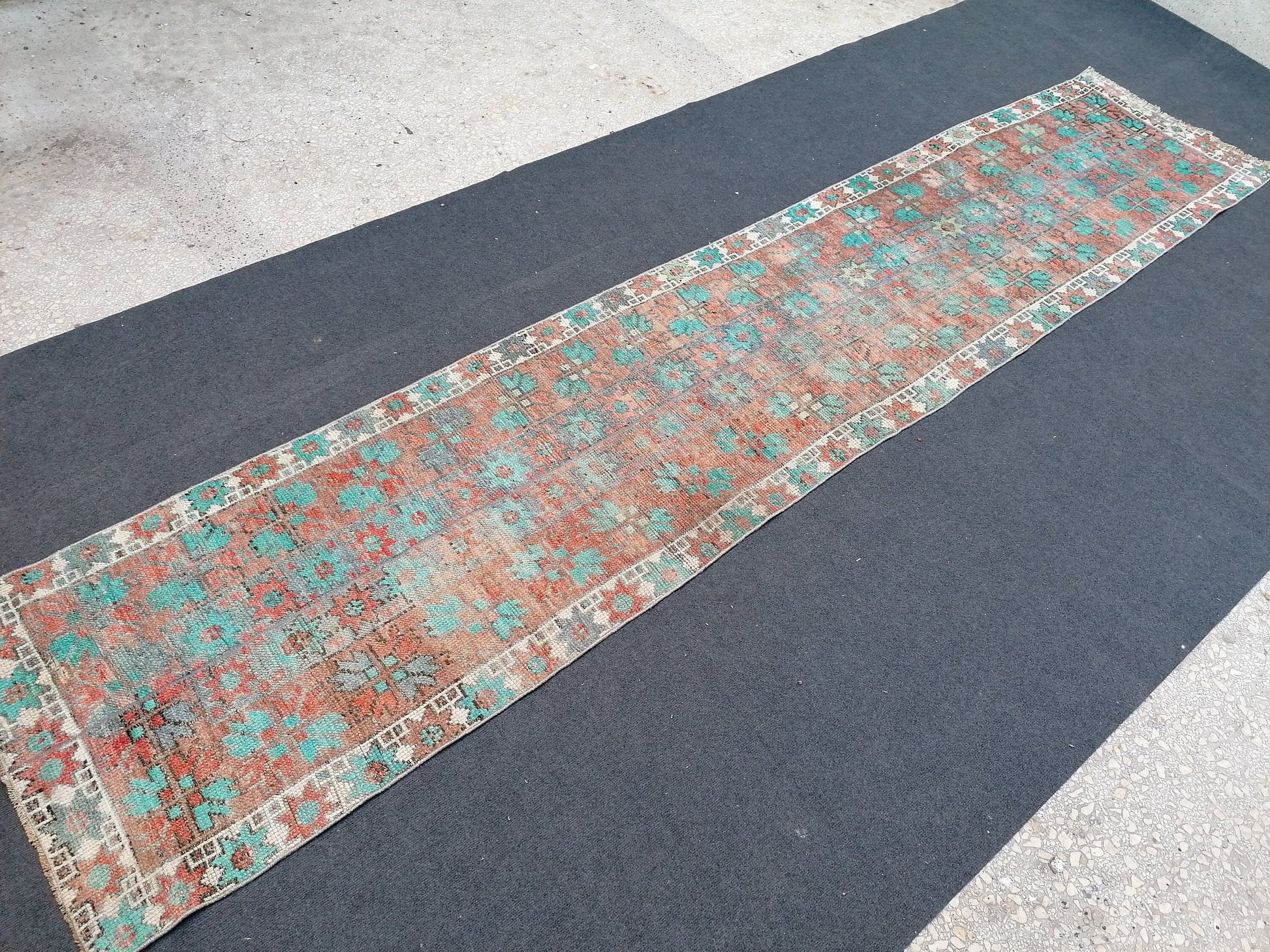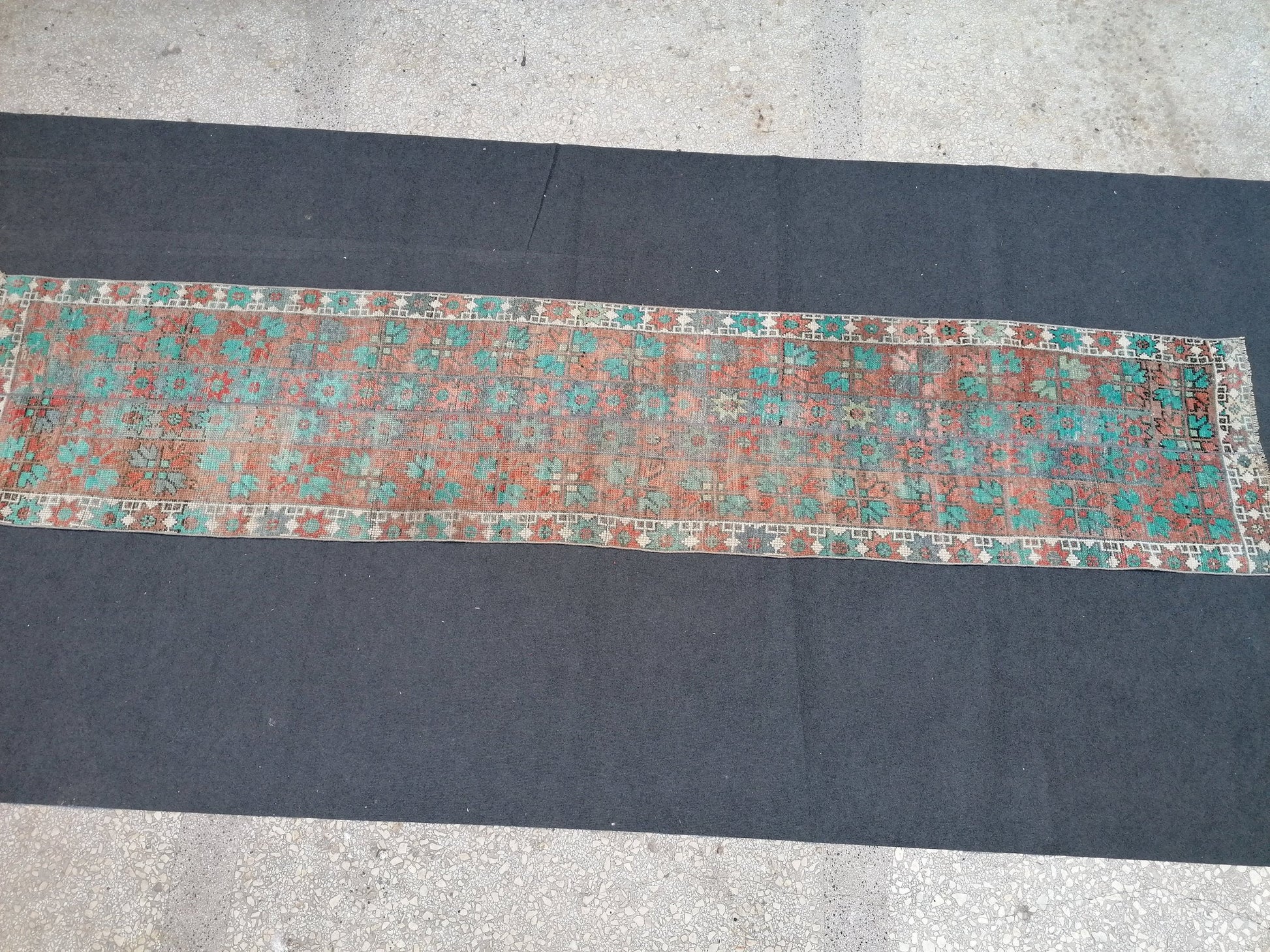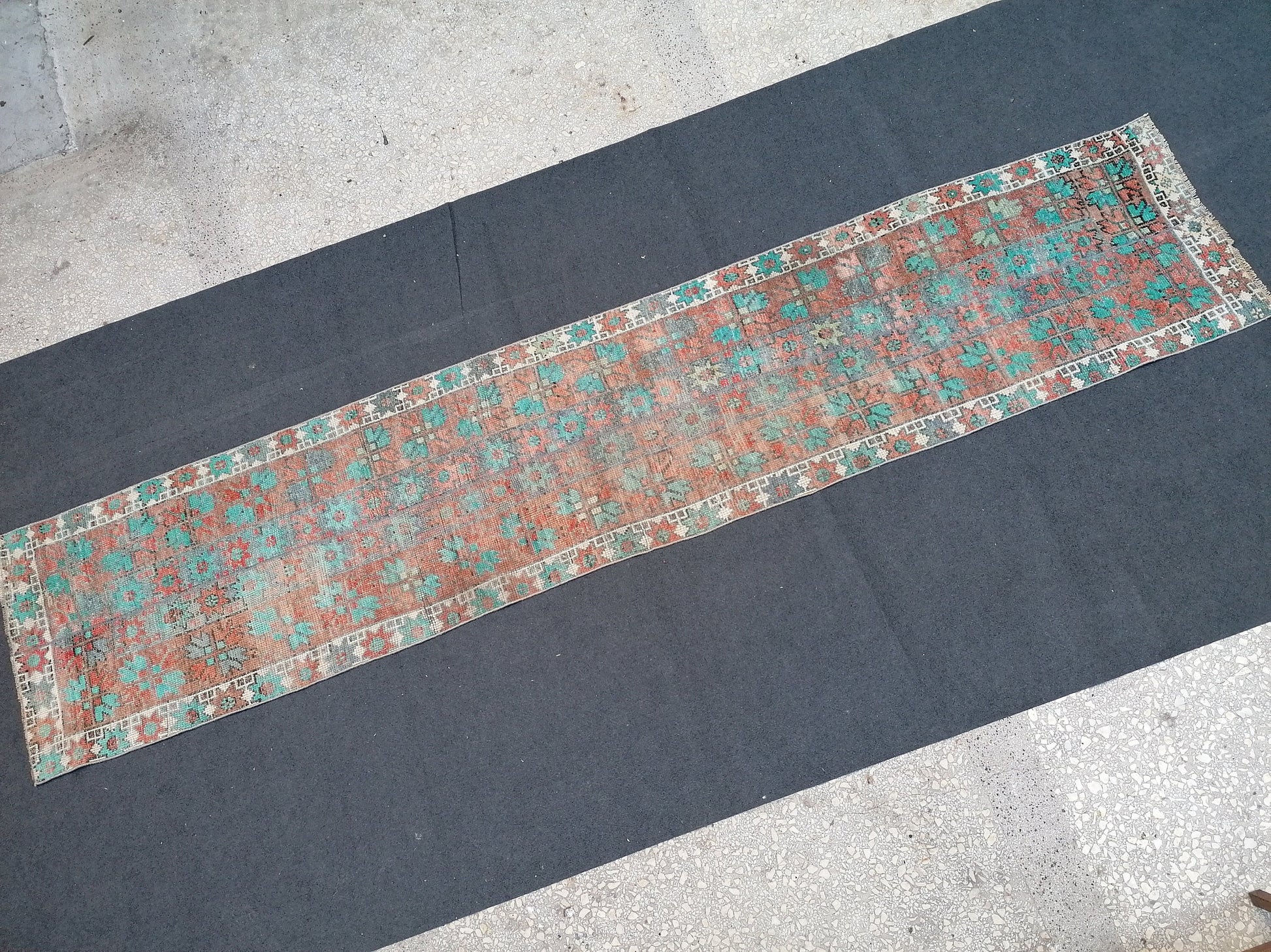 12x2'6 oushak turkish rug, vintage turkish rug,oushak vintage rug,vintage rug,kitchen rug, vintage anatolian rug,unique hand made patchwork