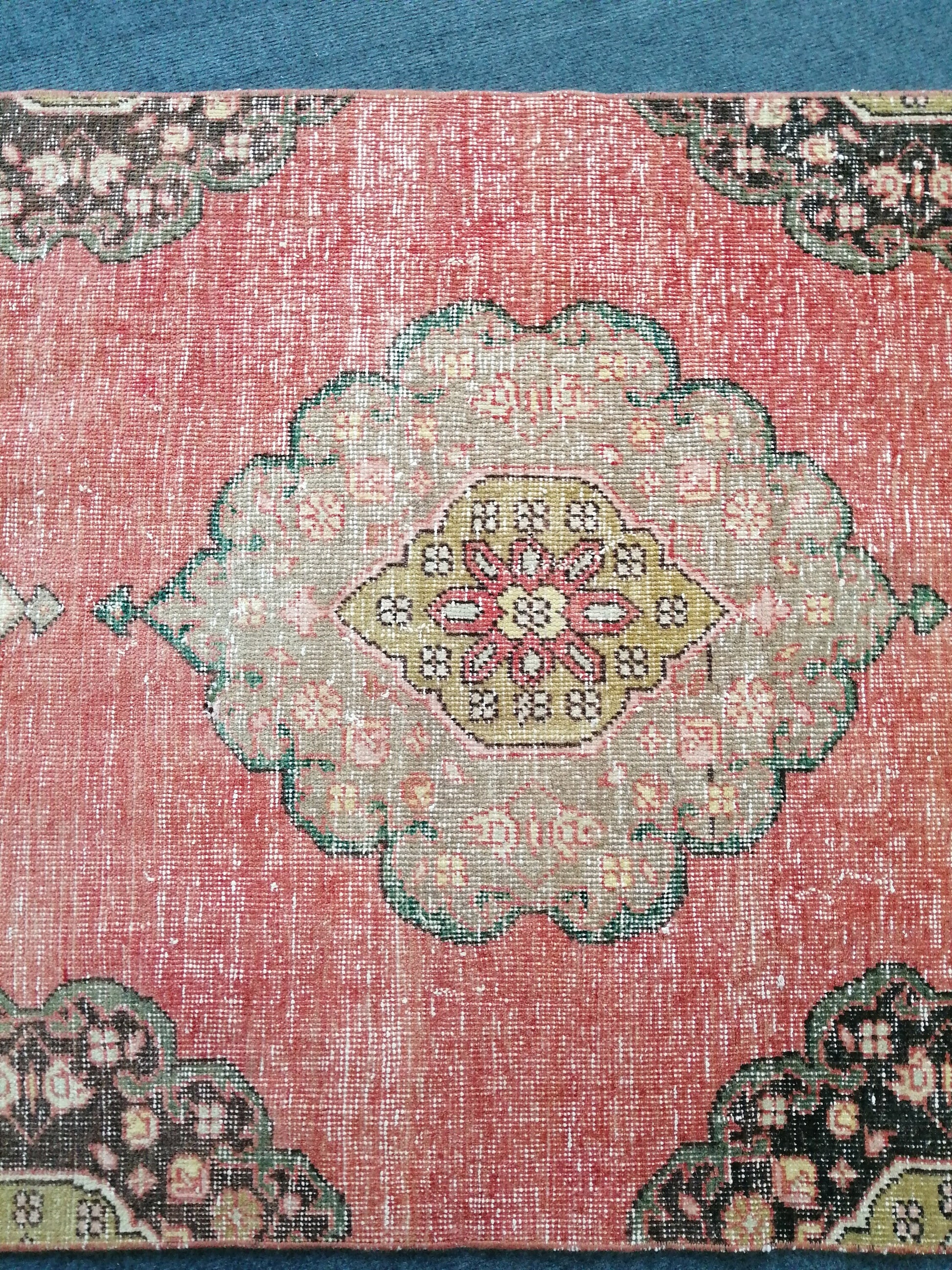 *A vintage handmade Turkish rug made of hand spun wool and double knotted on sturdy cotton foundation,