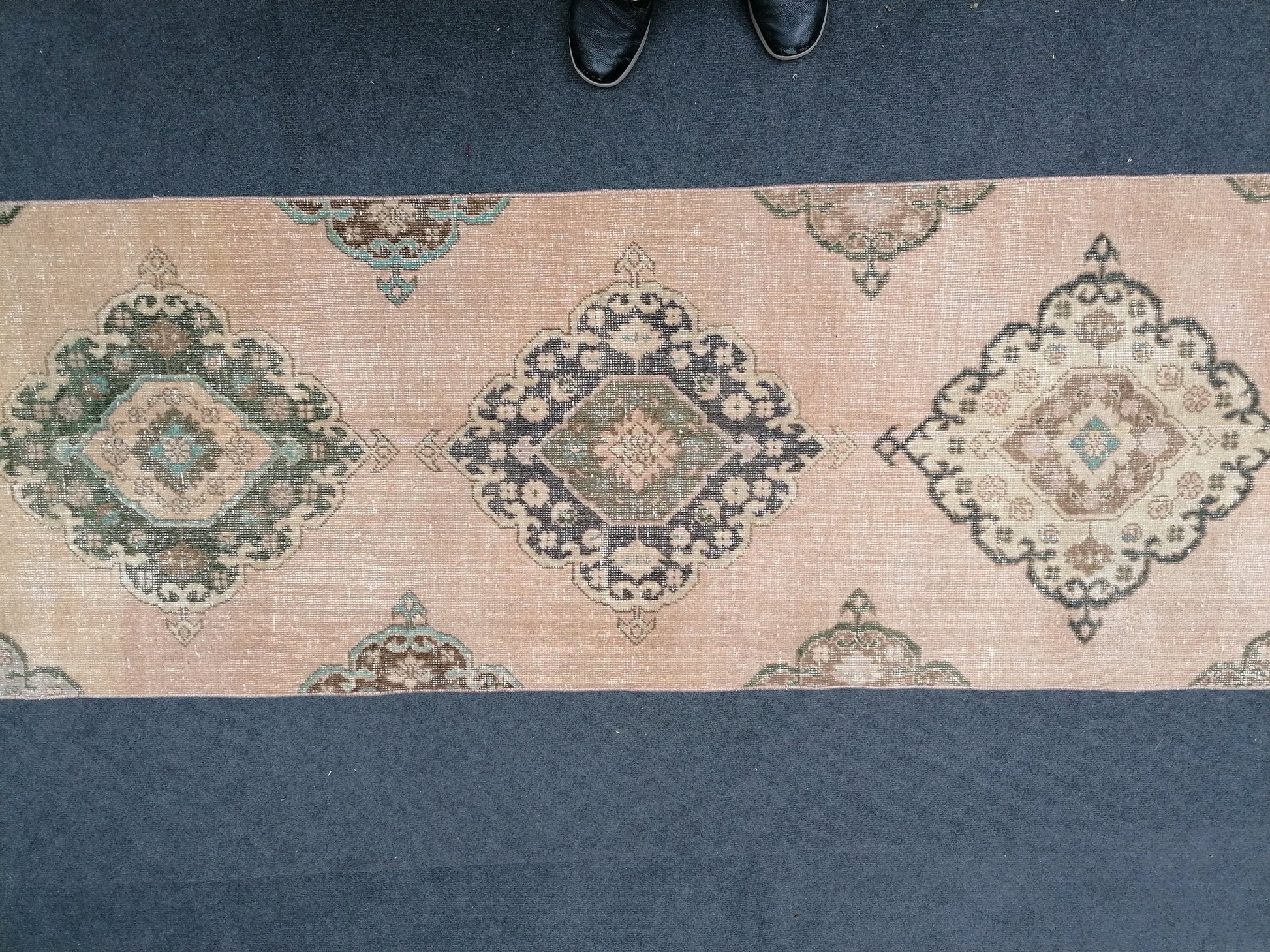 13'x2'8 runner rug, vintage turkish runner rug, oushak vintage runner rug, vintage runner rug,kitchen runner rug, vintage anatolian rug