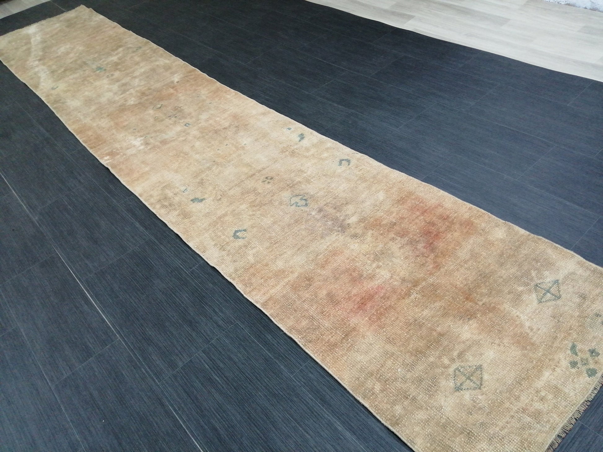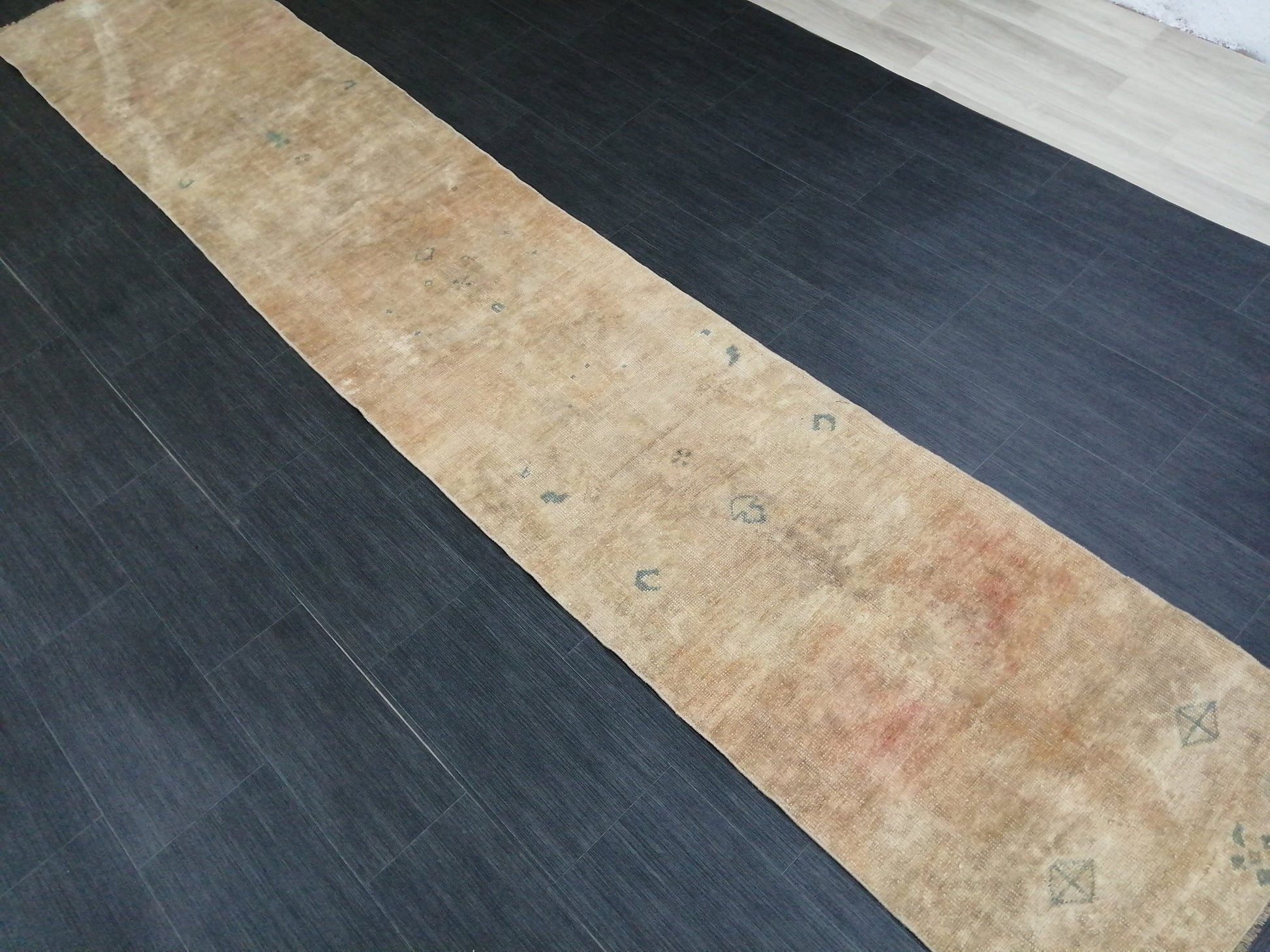 2.3 x 12.3 Muted Oushak Runner Rug Turkish Runner Rug Muted Vintage Runner Rug Washedout Hallway Runner Rug Kitchen Runner Rug Wool Runner