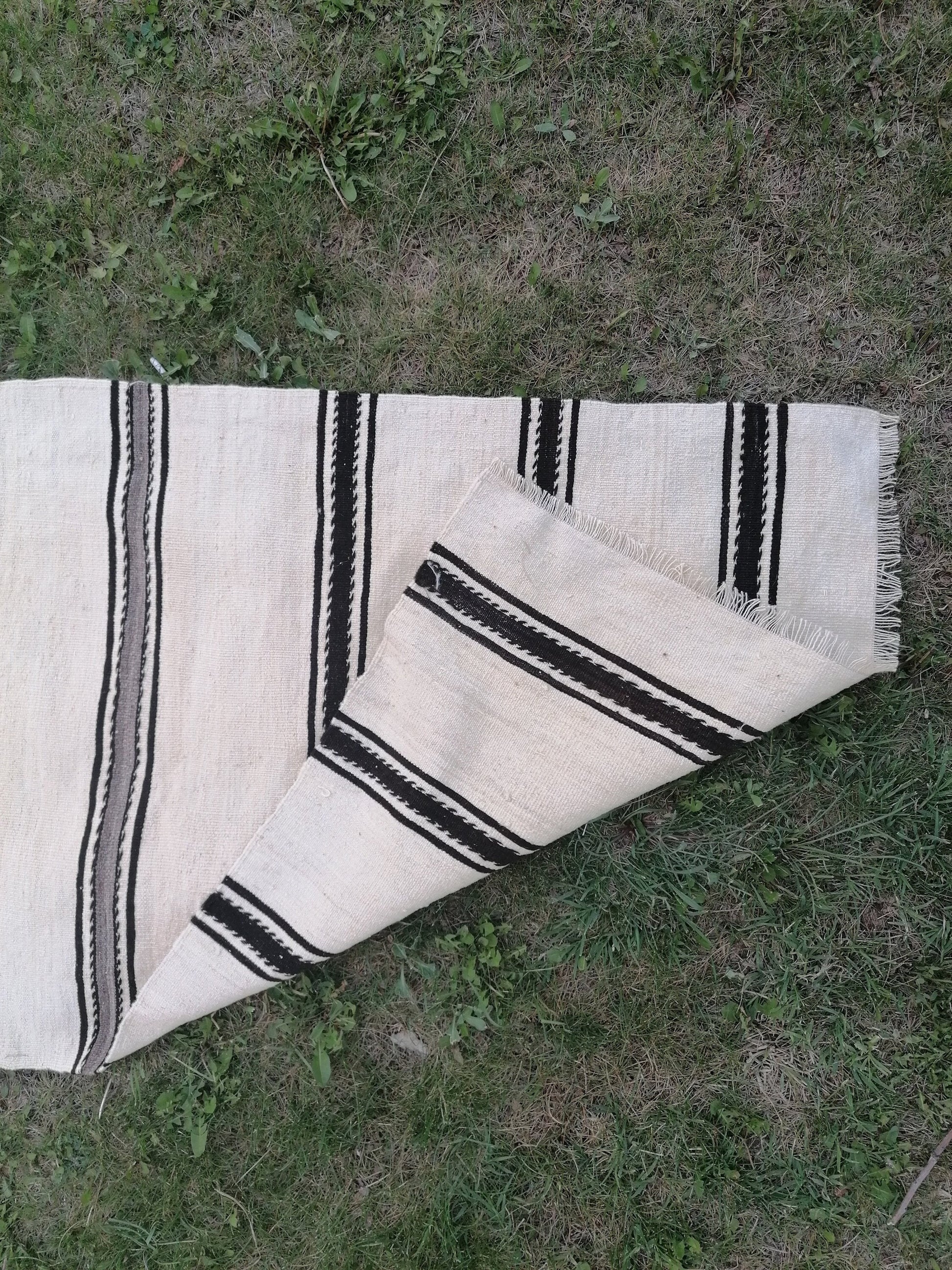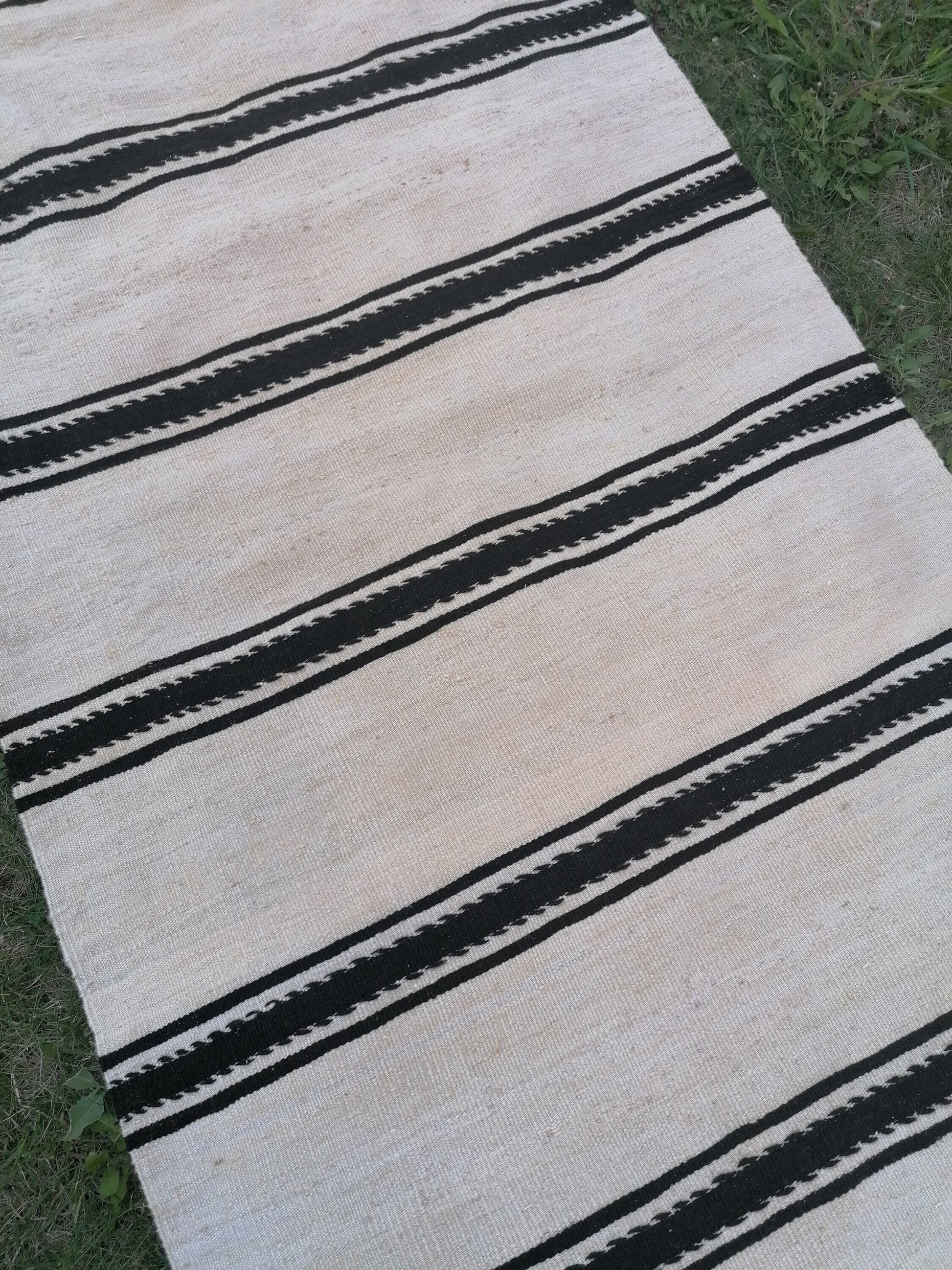 2.5 x 21 Neutral flatweave wool runner rug - stripe kilim runner, long handmade runner, turkish woven runner rug