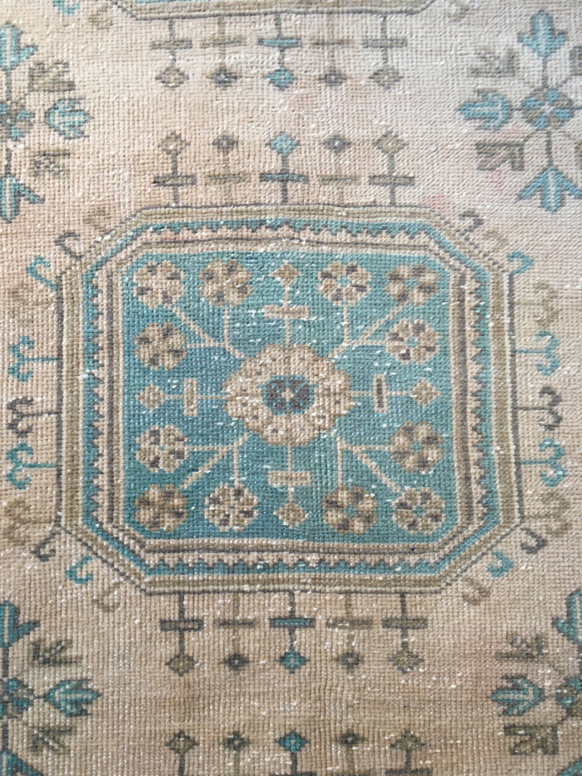 2.5x9 feet handmade long runner rug, wool teal overlong turkish runner, vintage kitchen runner, bathroom floor runner, bohemian wool runner