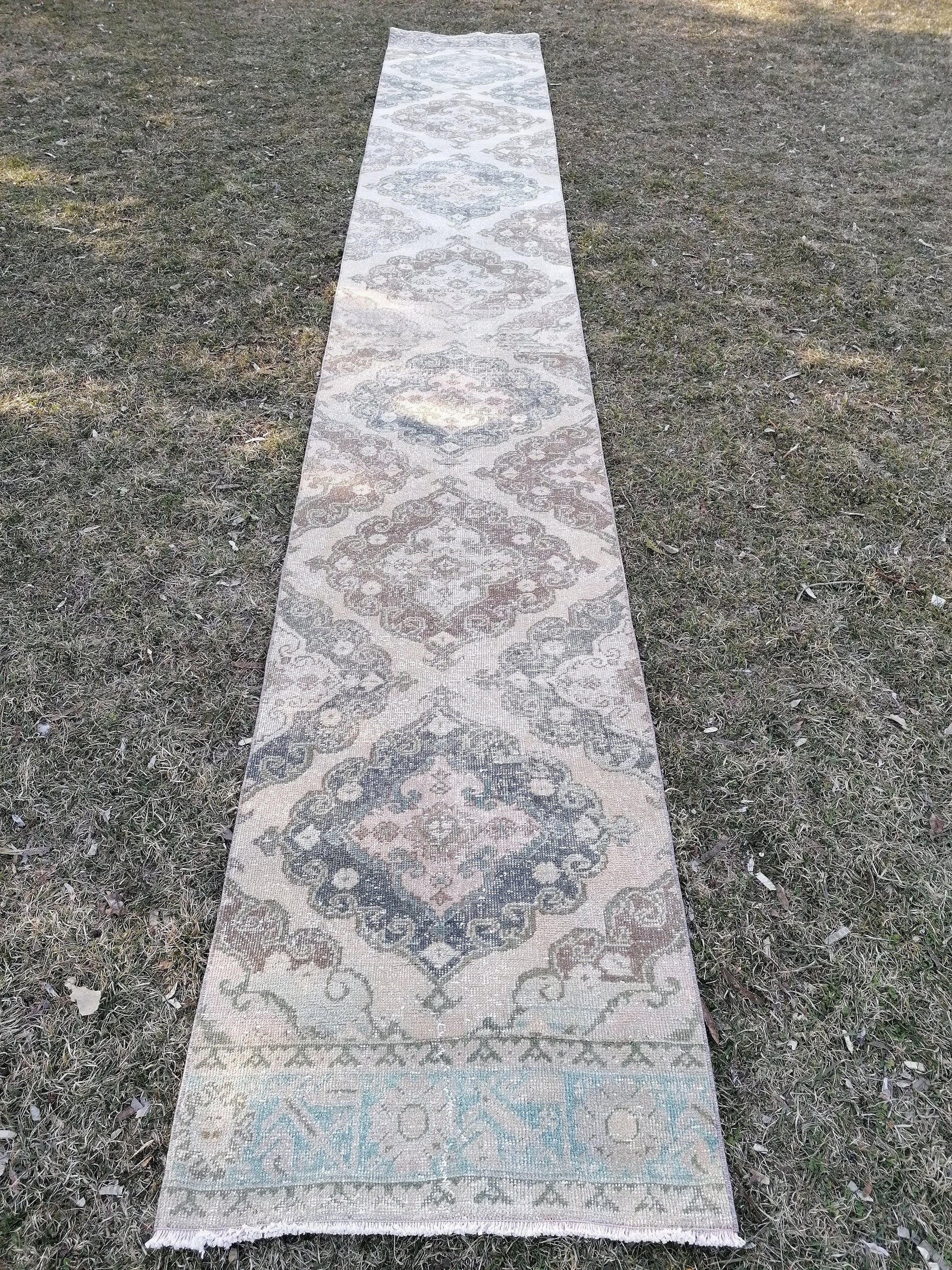 2.6 x 17.3 extra long vintage runner, oushak runner rug hallway runner, vintage anatolian rug