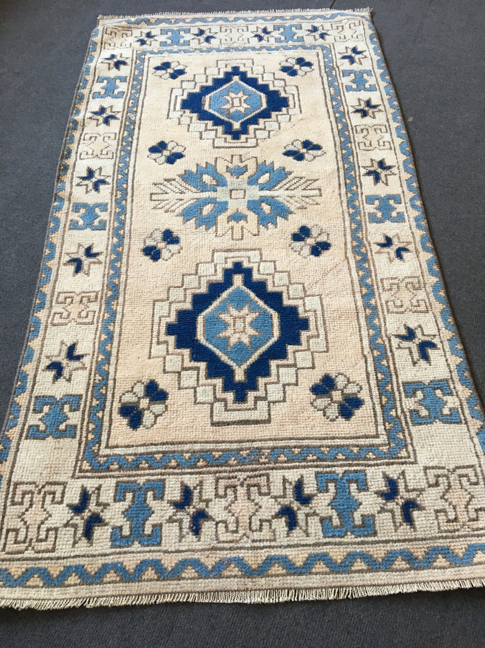 2.6x5.1 feet neutral wool rug, muted handmade living room rug, oushak large kitchen floor rug, turkish hallway area rug, vintage blue rug