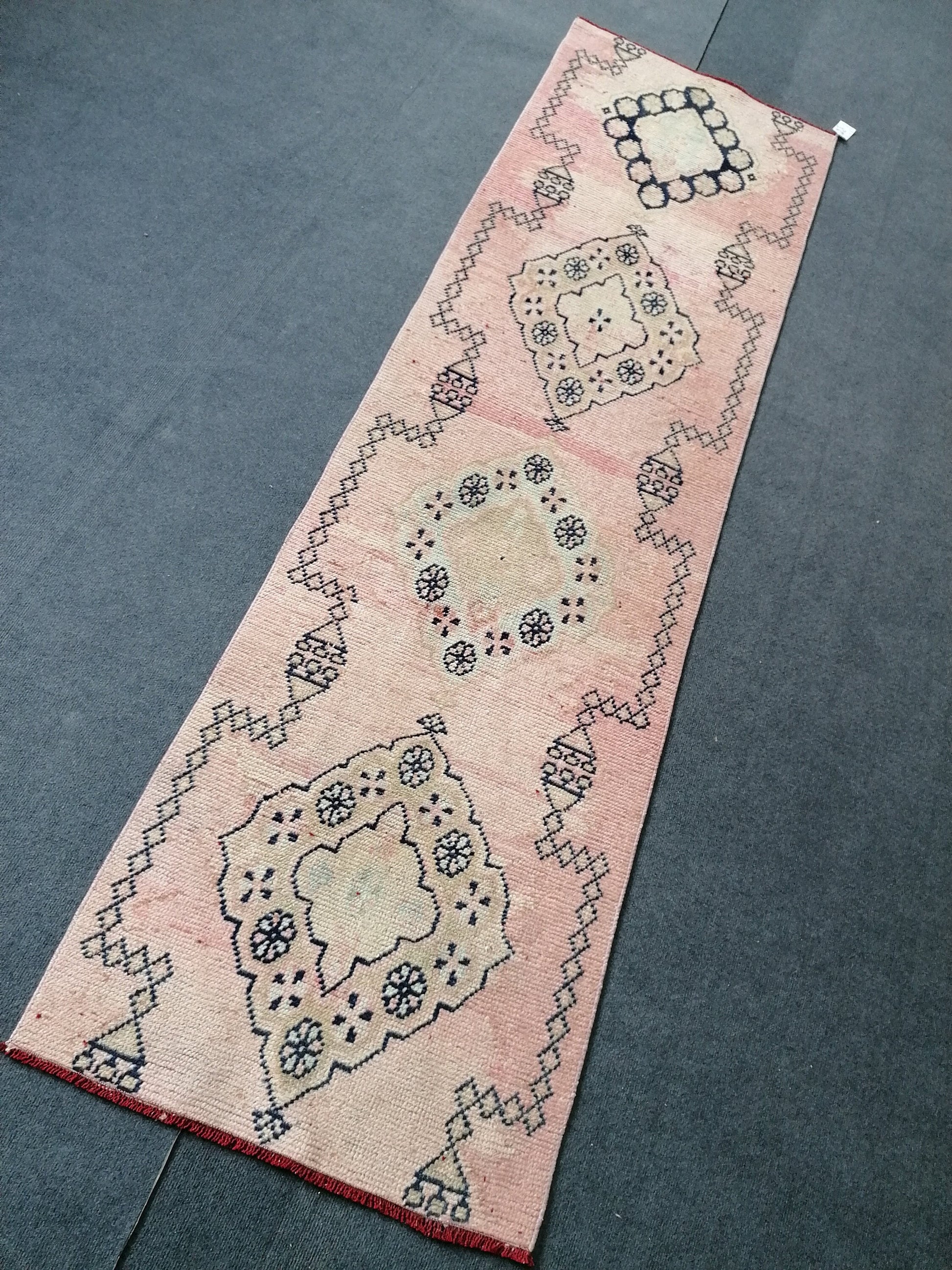 2'4x8'3 wool runner rug, hallway runner rug, vintage kitchen runner, turkish runner, oushak runner rug, bohemian rug