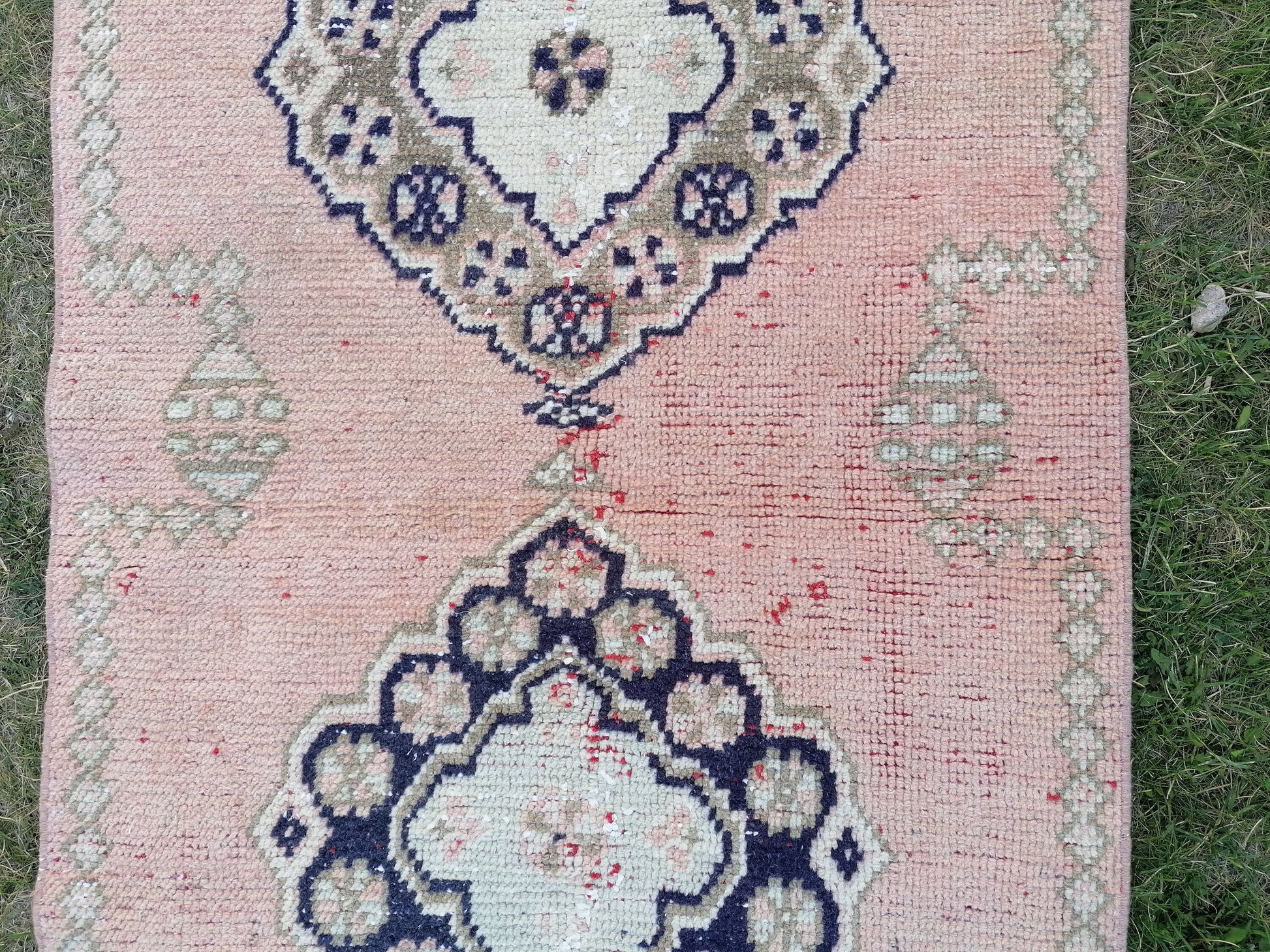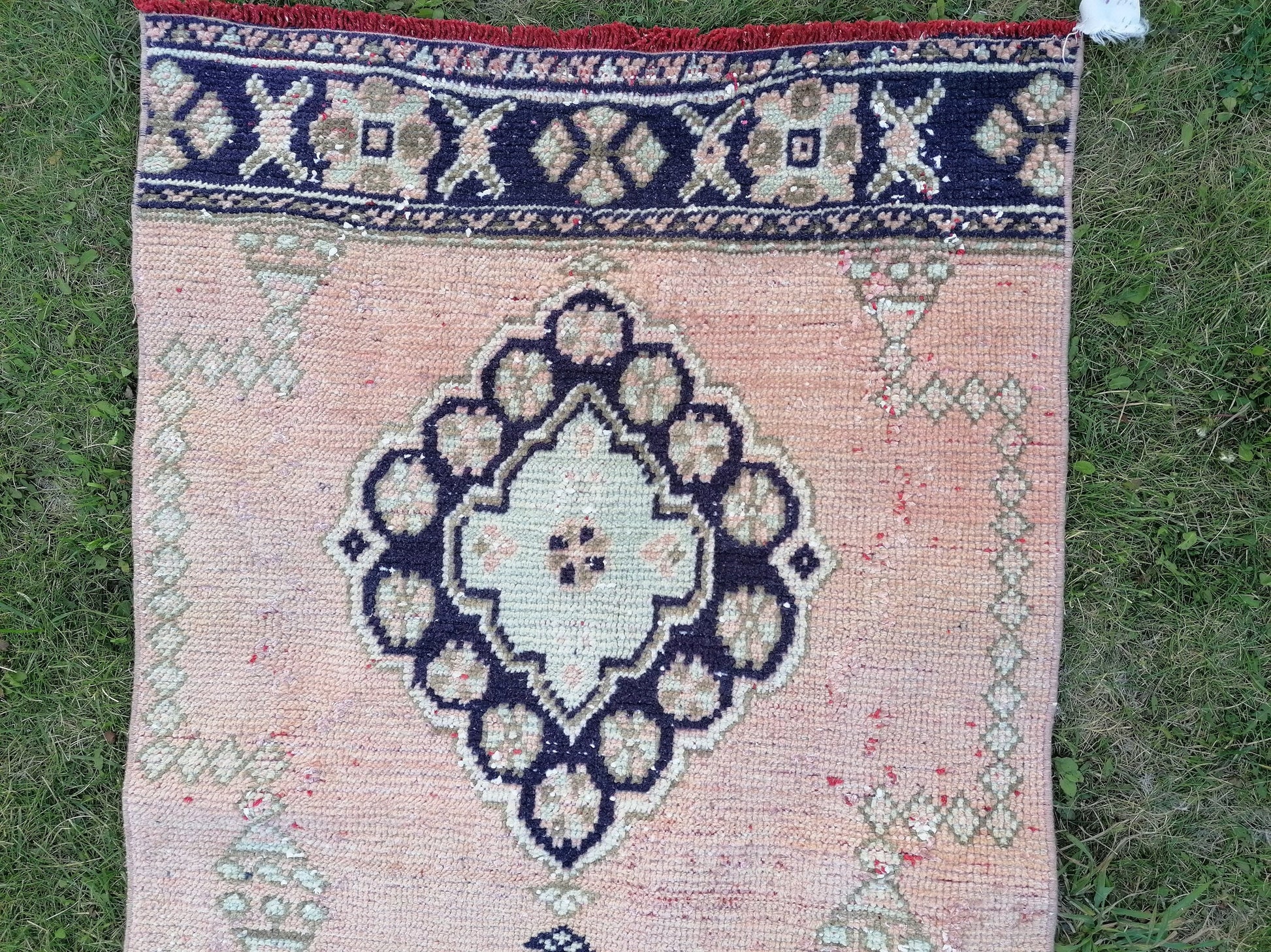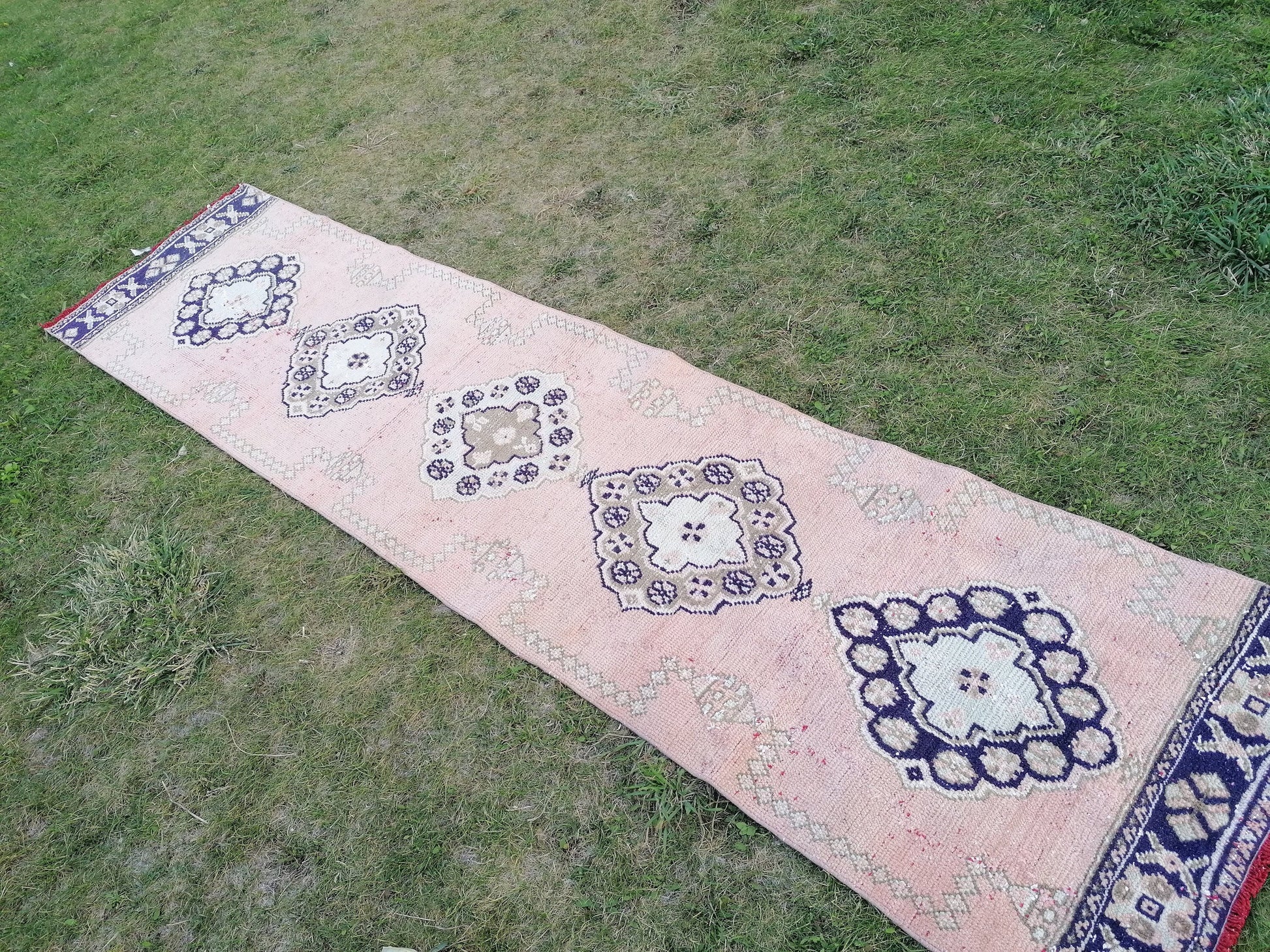 2'7x11 runner rug, vintage wool runner,pink runner rug, blue hallway runner rug kitchen runner rug wool runner rug
