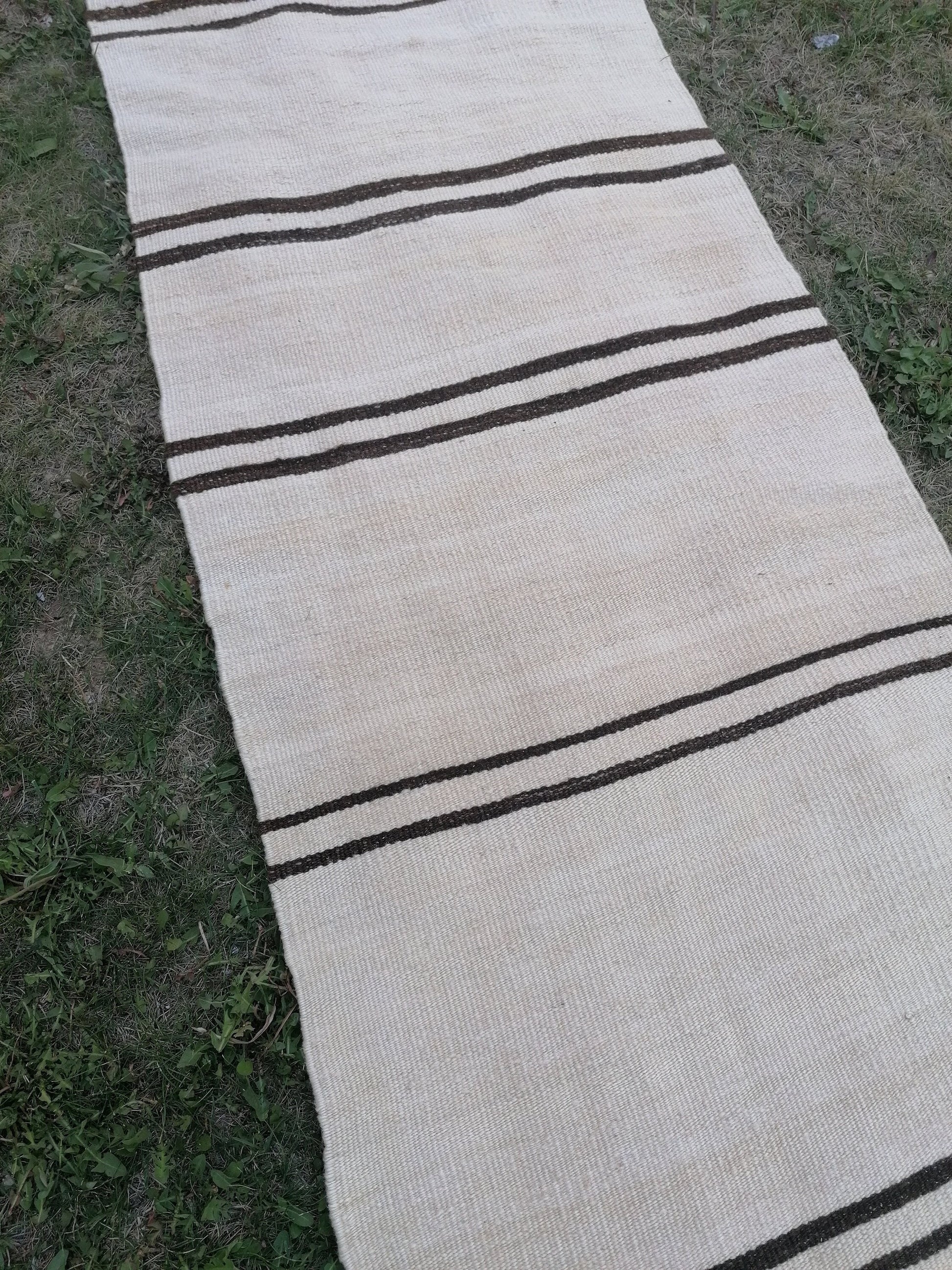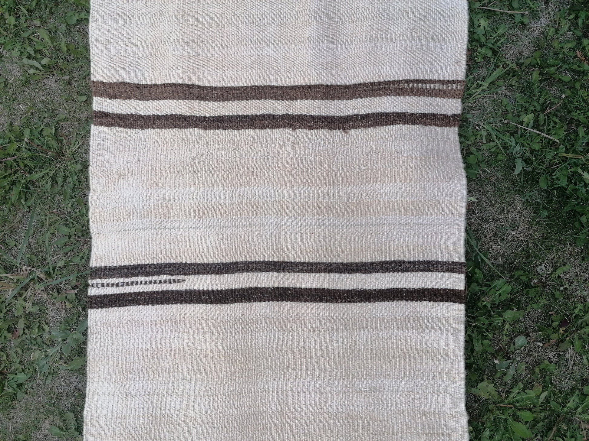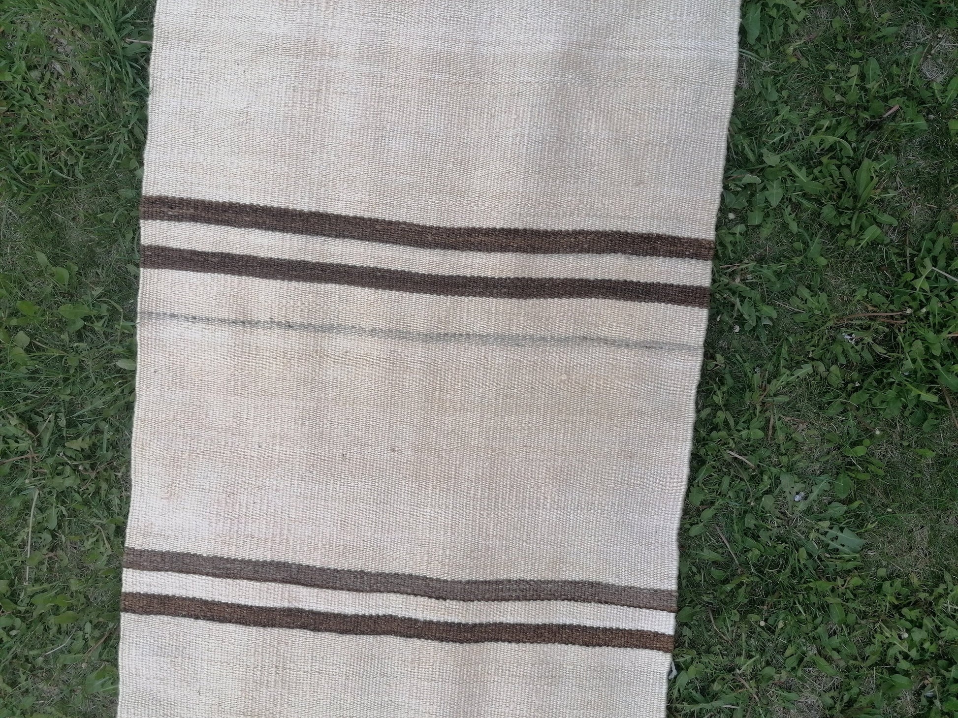 2x15 neutral flatweave runner rug, woven handmade wool runner, long stripe kilim runner rug