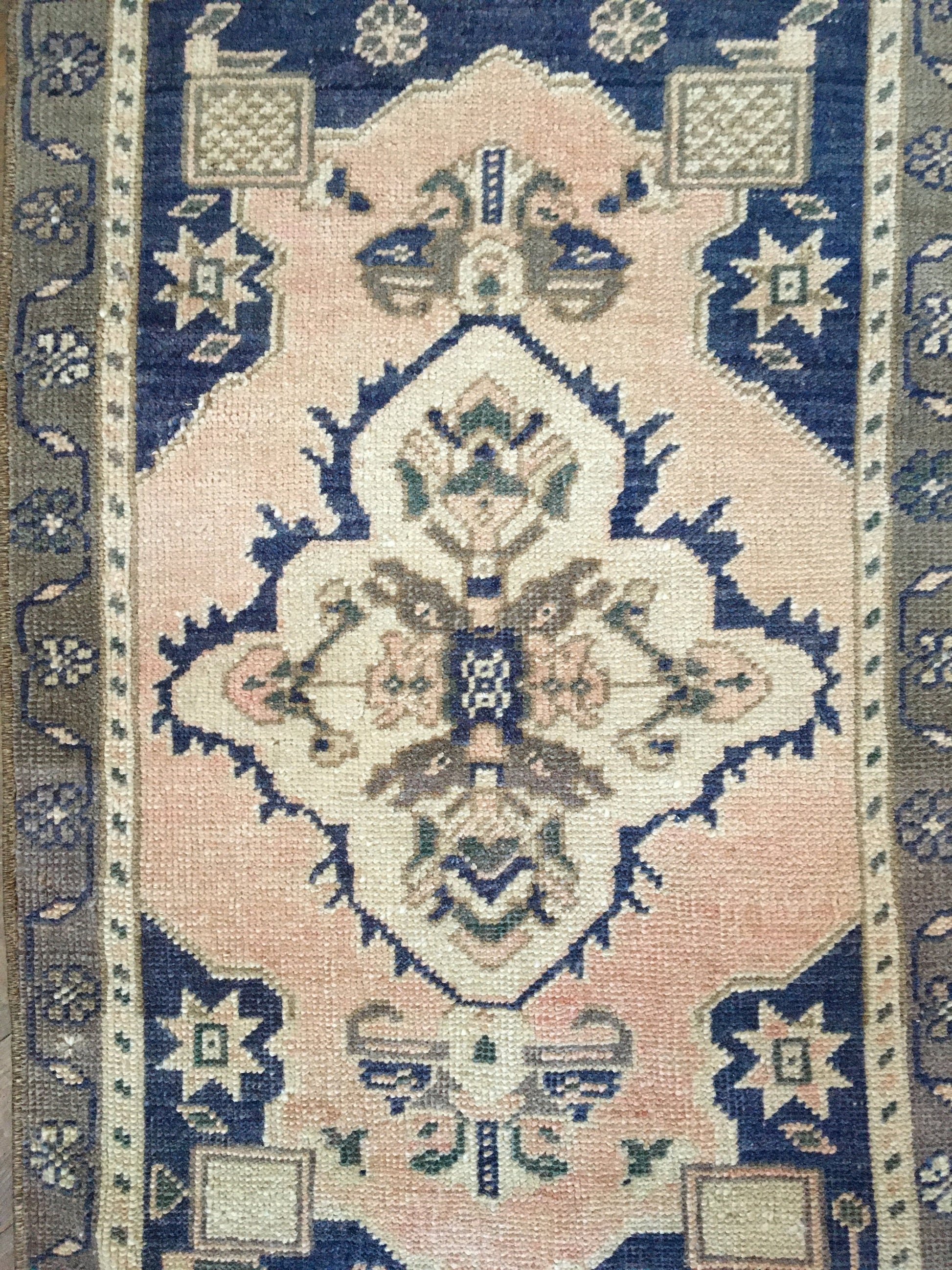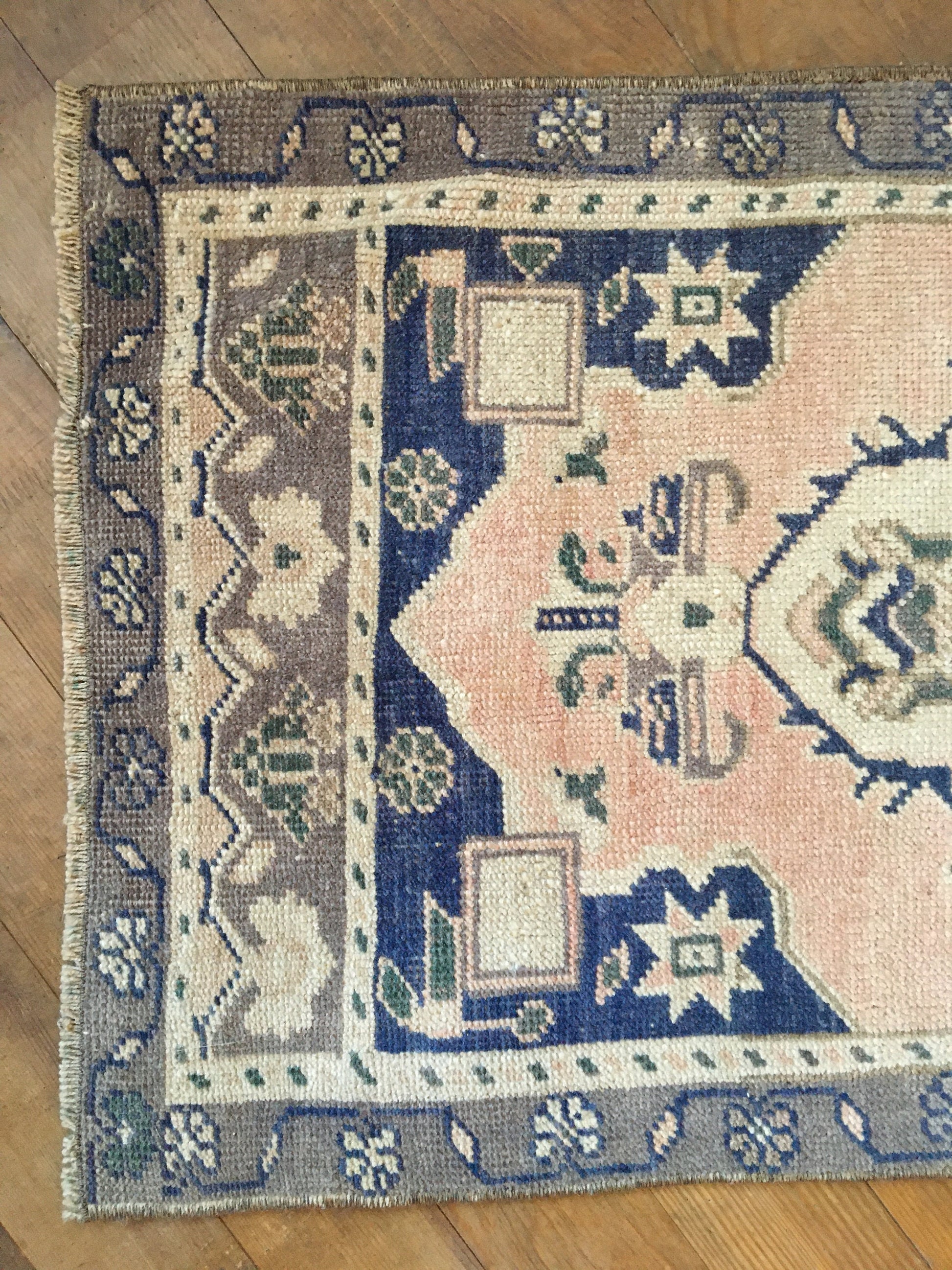 2x3 feet turkish small rug, vintage blue bedroom mini rug, oushak kitchen area small rug, handmade wool bath mat rug,entryway tiny muted rug