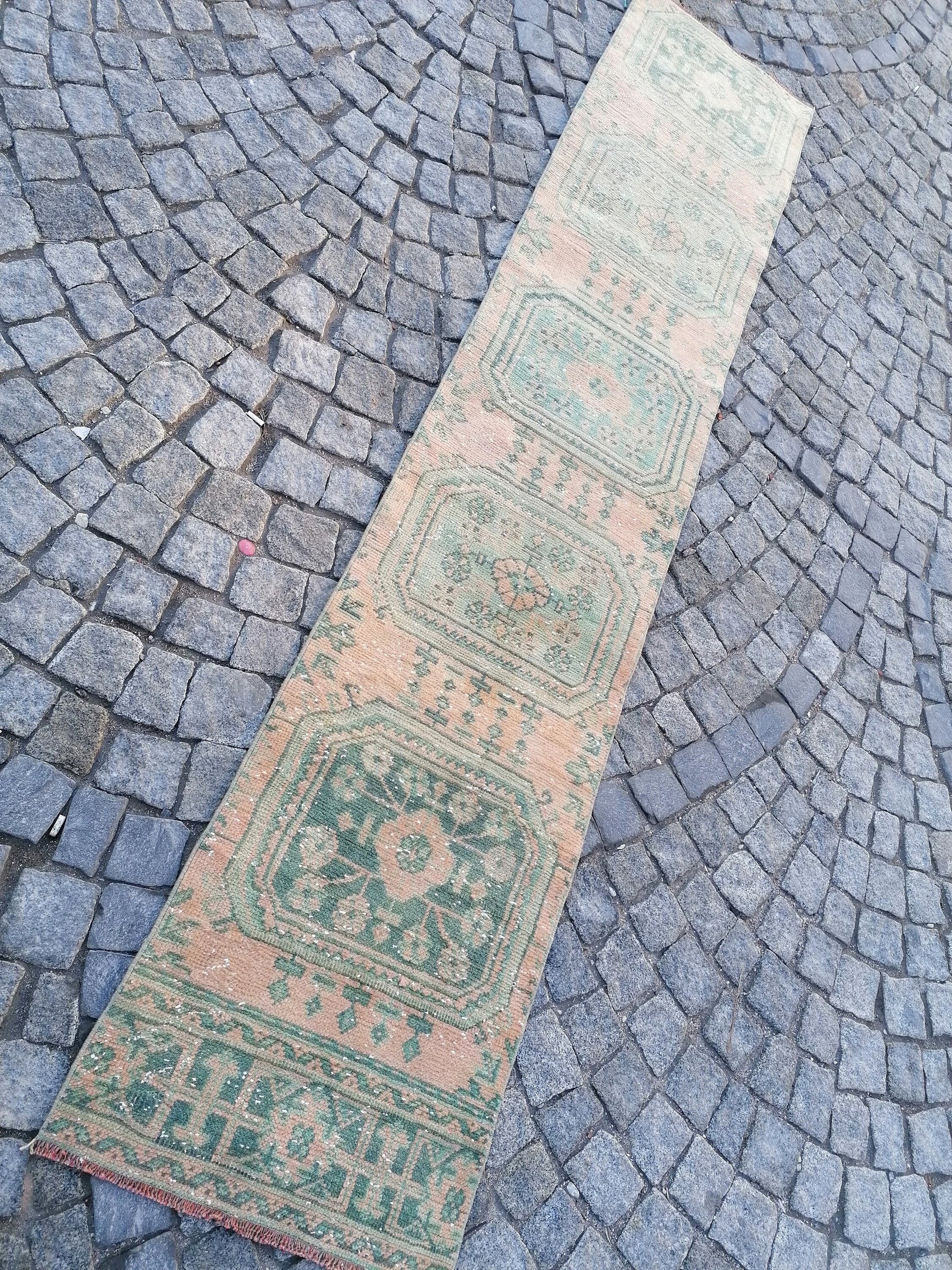 2x9'8 oushak turkish runner rug,turkish wool vintage handmade runner, kitchen runner rug