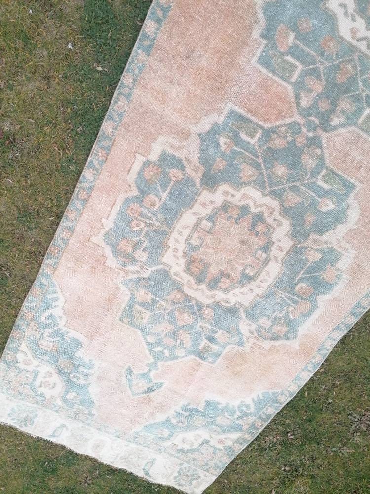 3.10 x 10.7 Muted vintage rug, oushak runner rug hallway runner, kitchen vintage anatolian rug