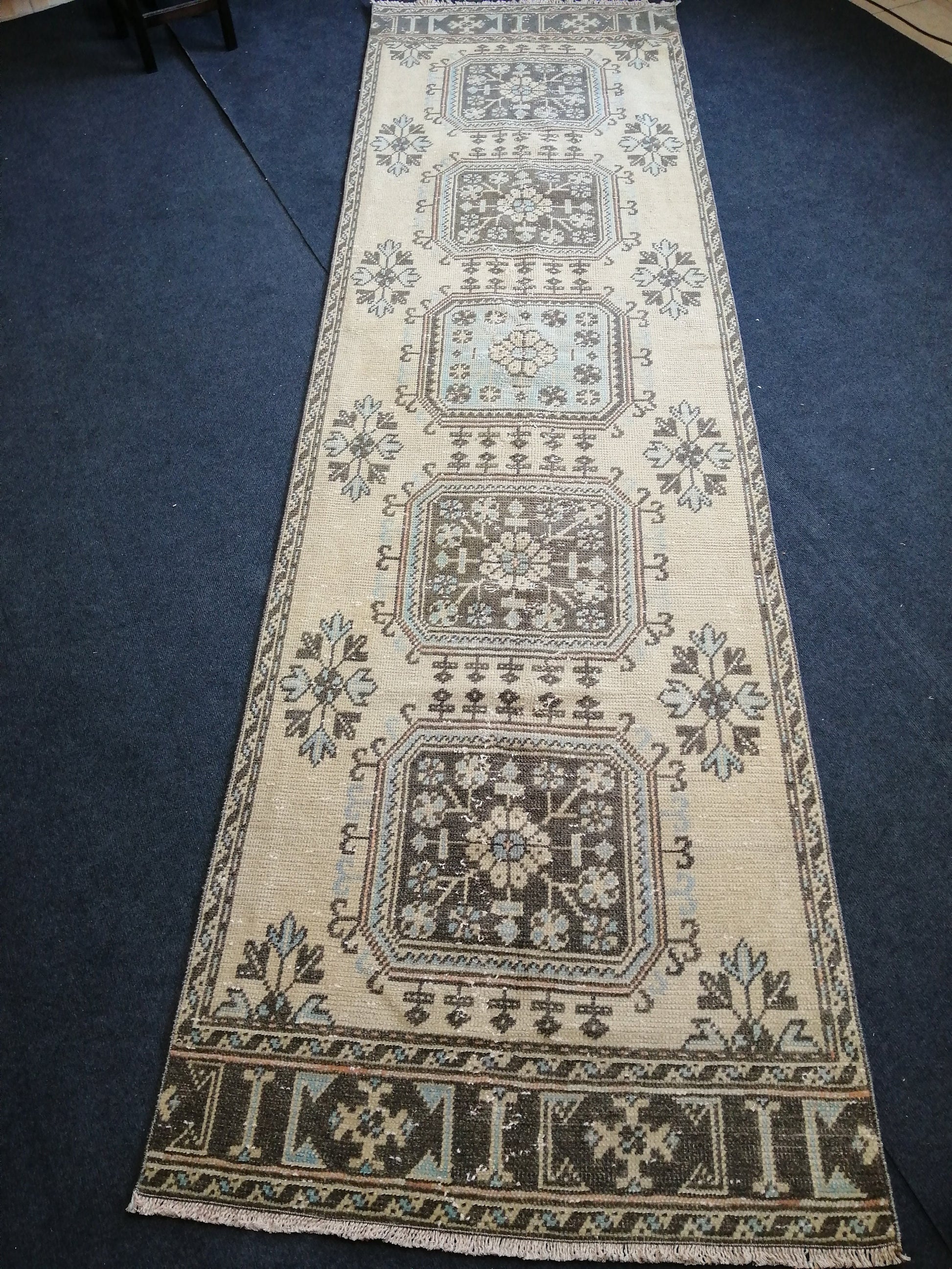 3.2 x 11.5 Muted Oushak Runner Rug Turkish Runner Rug Vintage Runner Rug Hallway Runner Rug Kitchen Runner Rug Wool Runner Rug Wool Rug