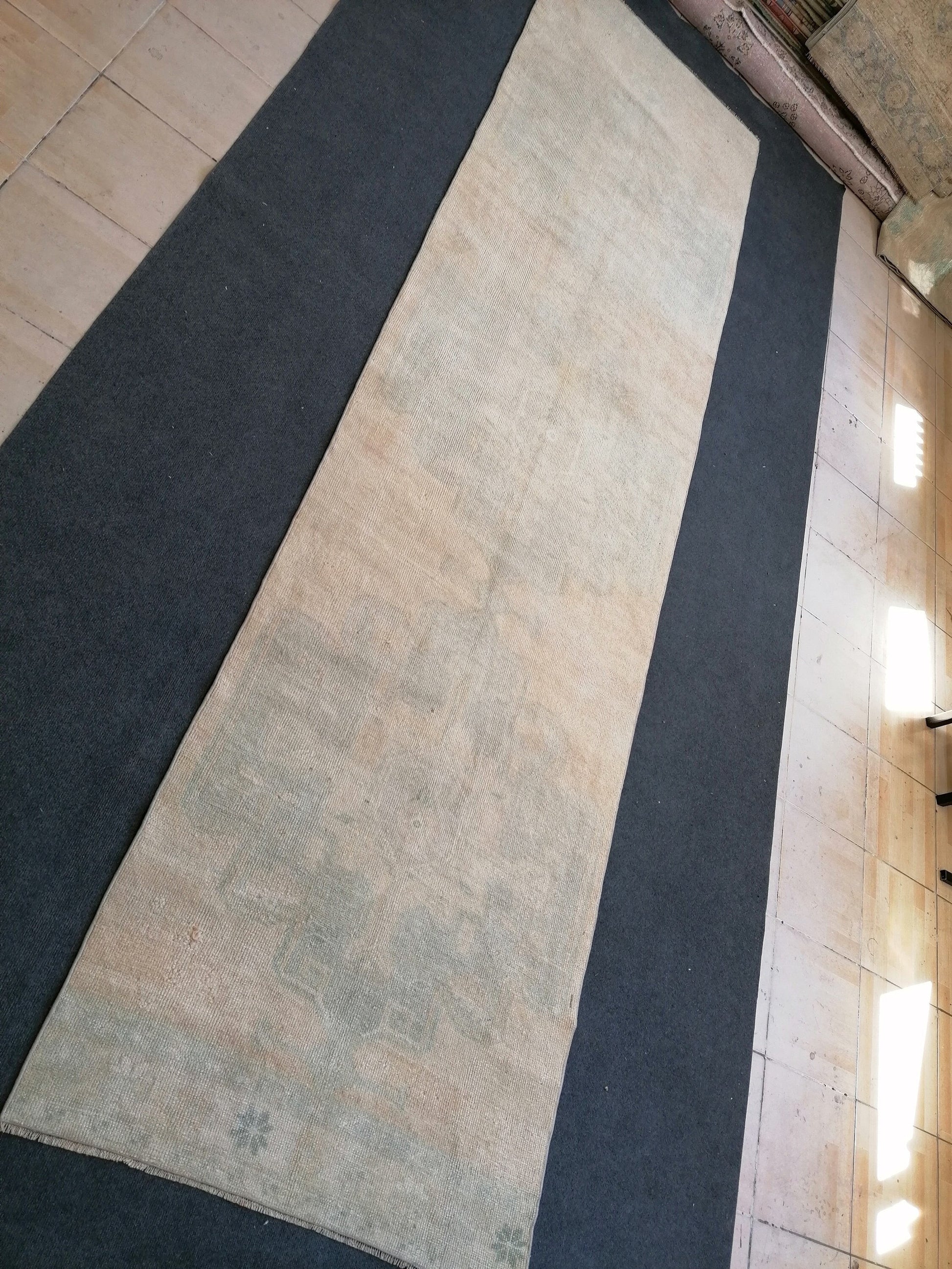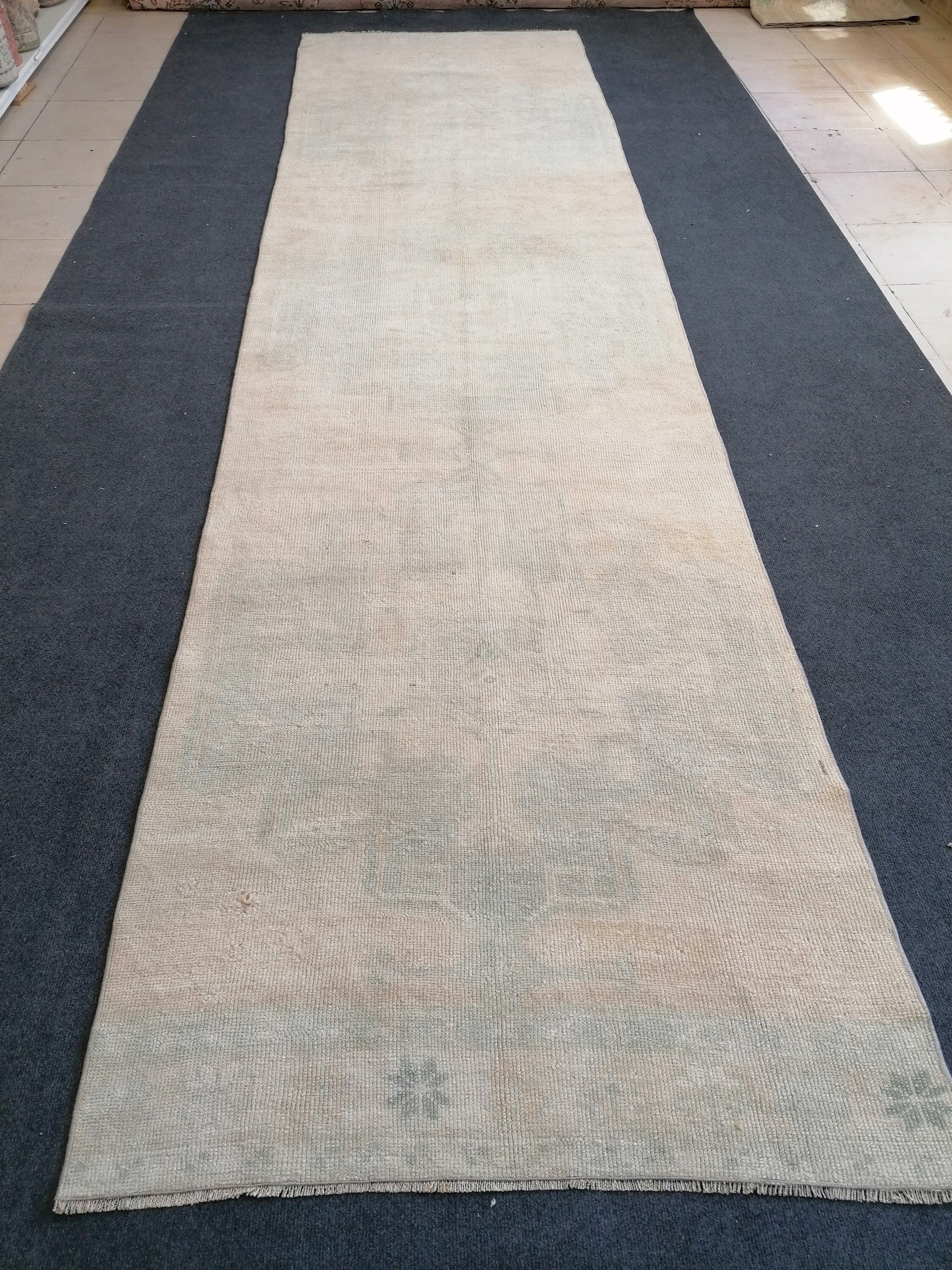 3.3 x 12.9 Turkish runner rug, vintage oushak runner rug,kitchen runner rug, hallway runner rug, Handmade runner