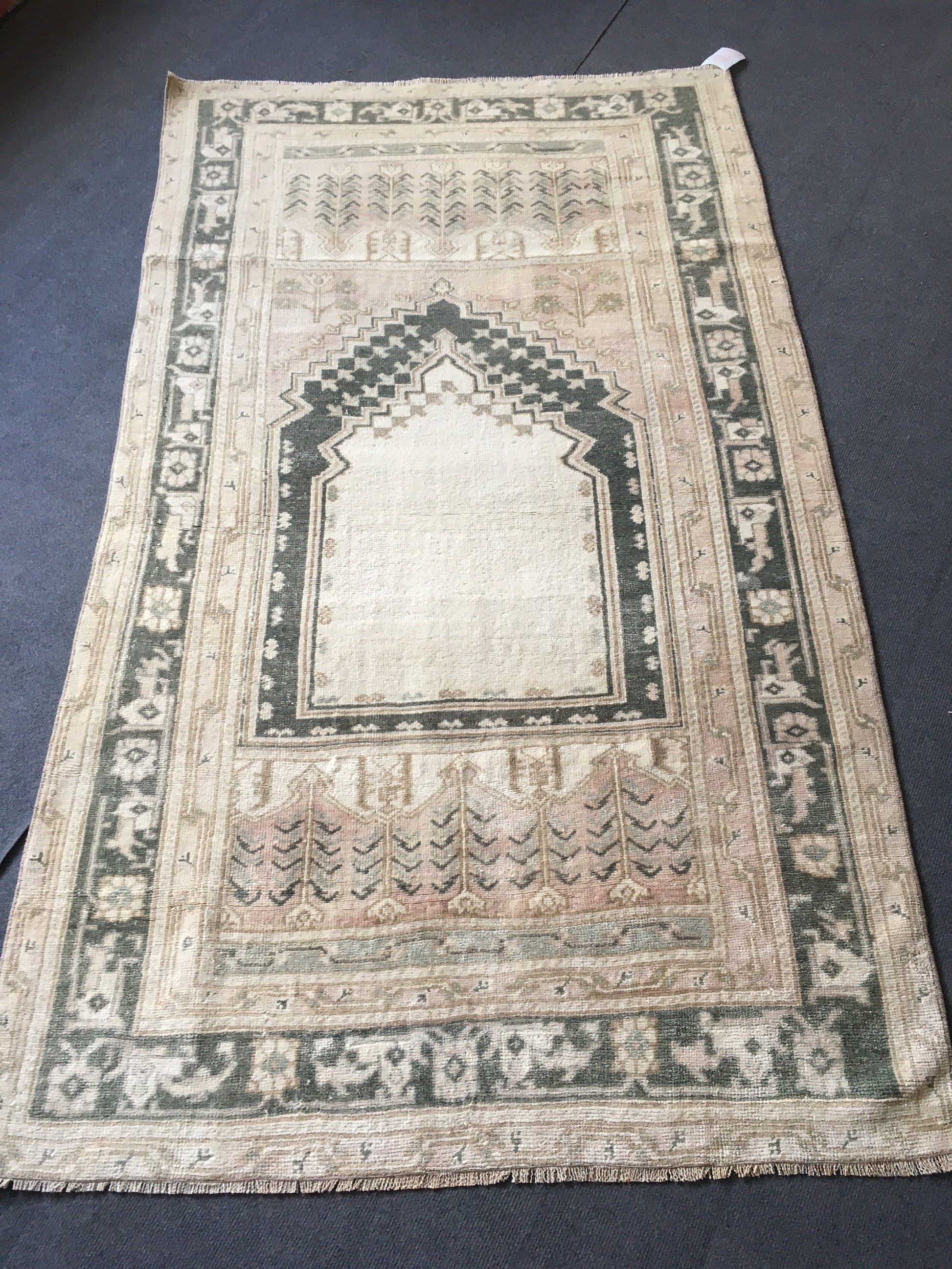 3.6x6 feet natural muted entryway floor rug, turkish living room large rug, vintage black handmade bedroom area rug, office floor wide rug