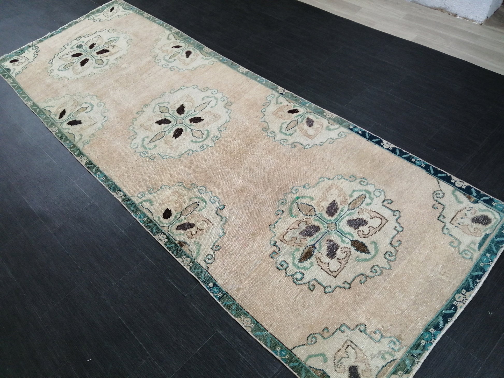 3.8 x 11.3 Oushak Runner Rug Turkish Runner Rug Vintage Runner Rug Hallway Runner Rug Kitchen Runner Rug Wool Runner Floral Oriental Runner