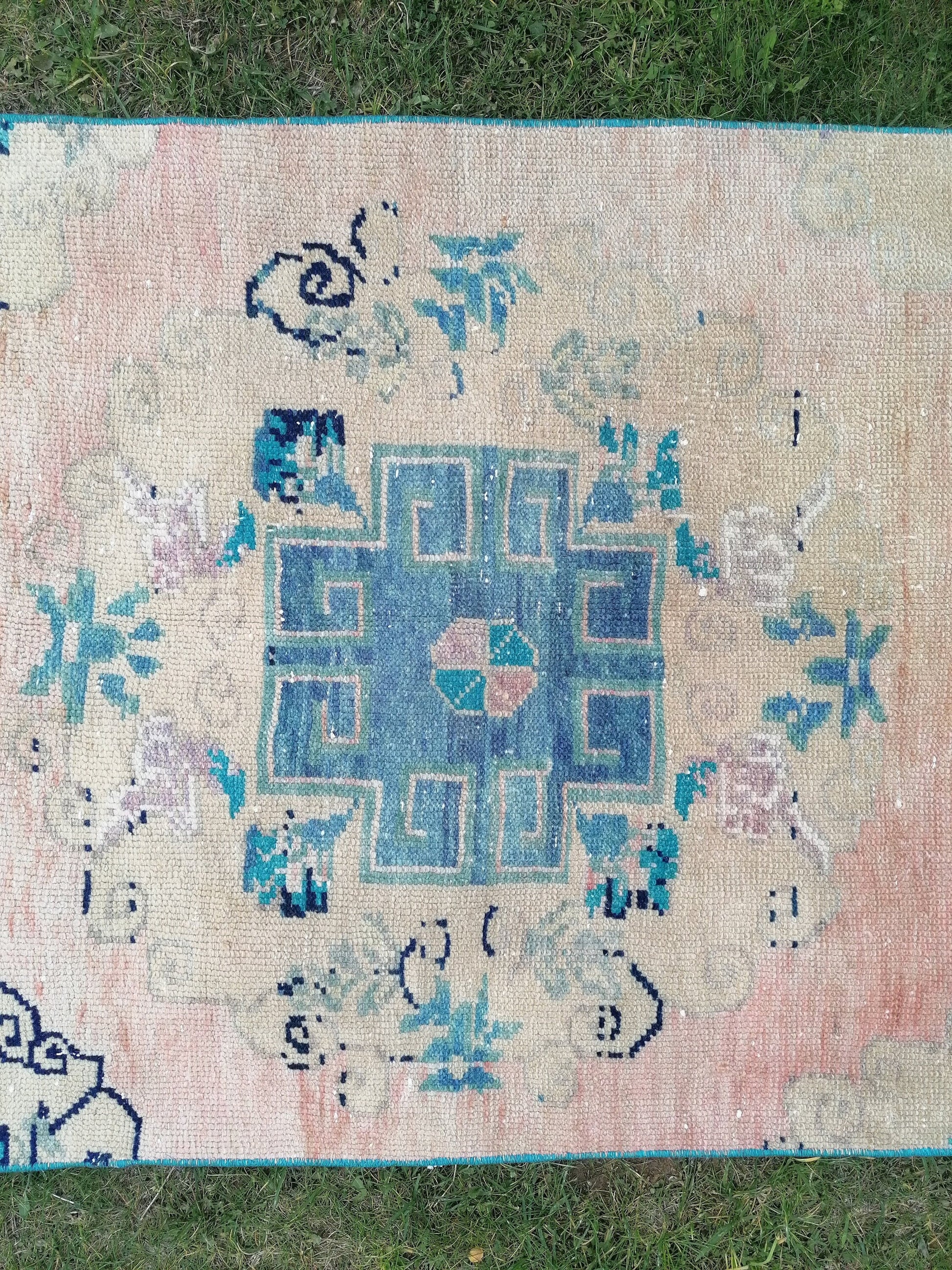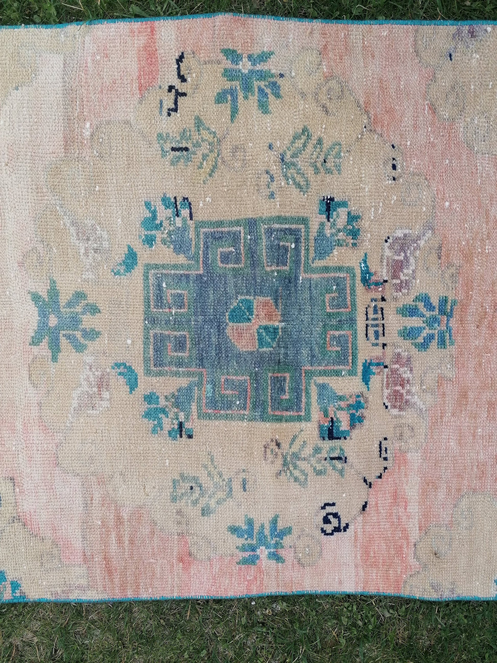 Muted Soft Colors Rug Vintage Rug Turkish Oushak Rug Rustic Unsual Tribal Rug Retro Style Rug Traditional Turkish Design