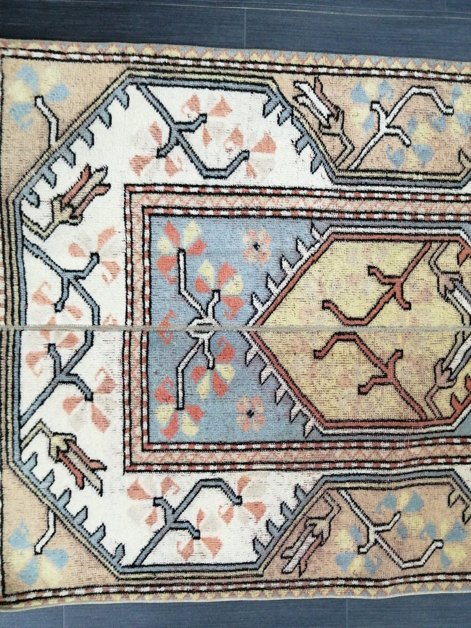 * THIS PATCHWORK RUG IS WEAVED IN 2 PIECES AND IT IS STITCHED AFTER FINISHED A PIECE OF ART FROM CENTRAL ANATOLIA WITH TRADITIONAL PATTERN, HAND SPUN WOOL ,