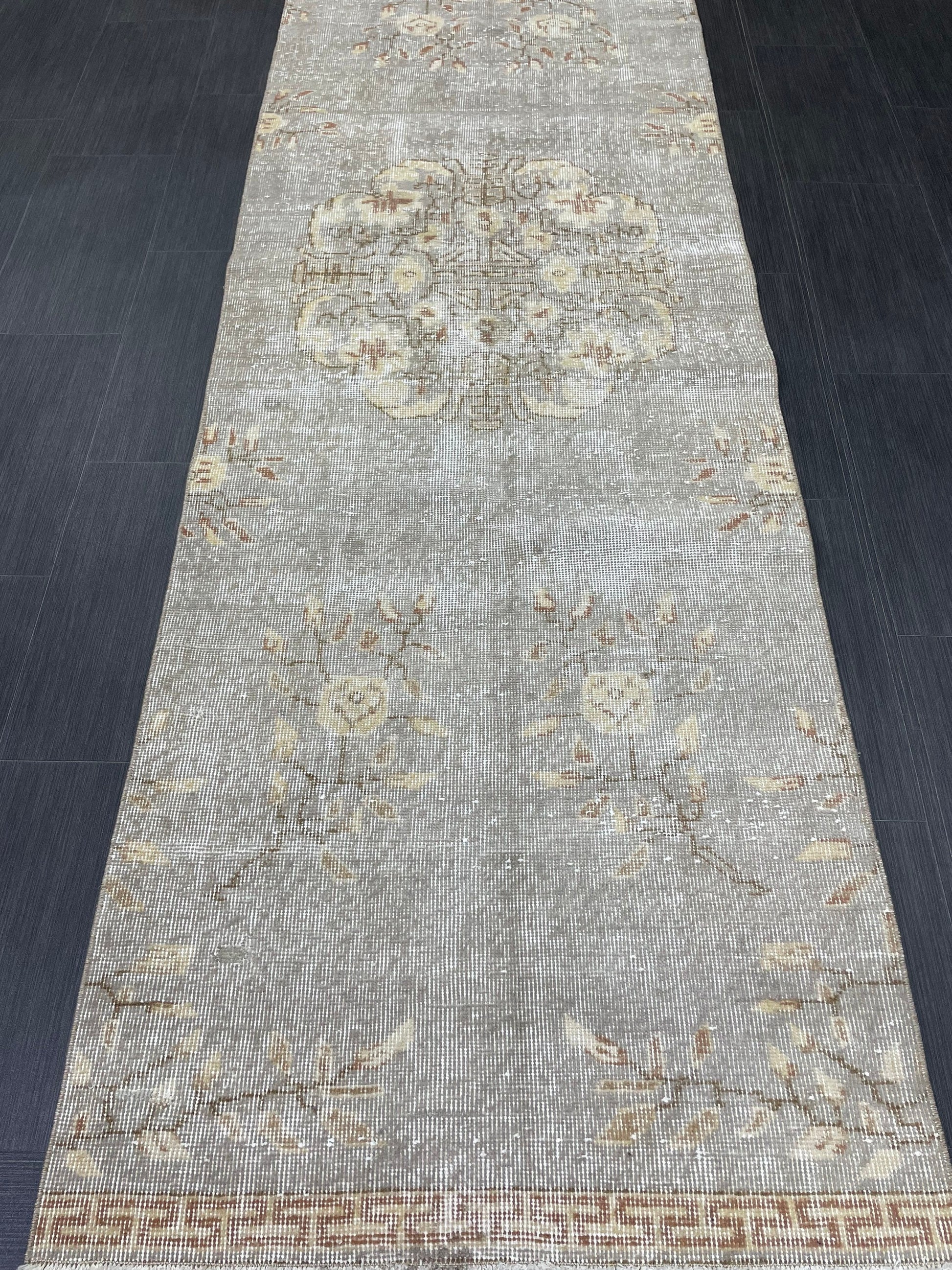 3 x 9.6 Muted Oushak Runner Rug Turkish Runner Rug Vintage Runner Rug Hallway Runner Rug Kitchen Runner Rug Wool Runner Grey Silver