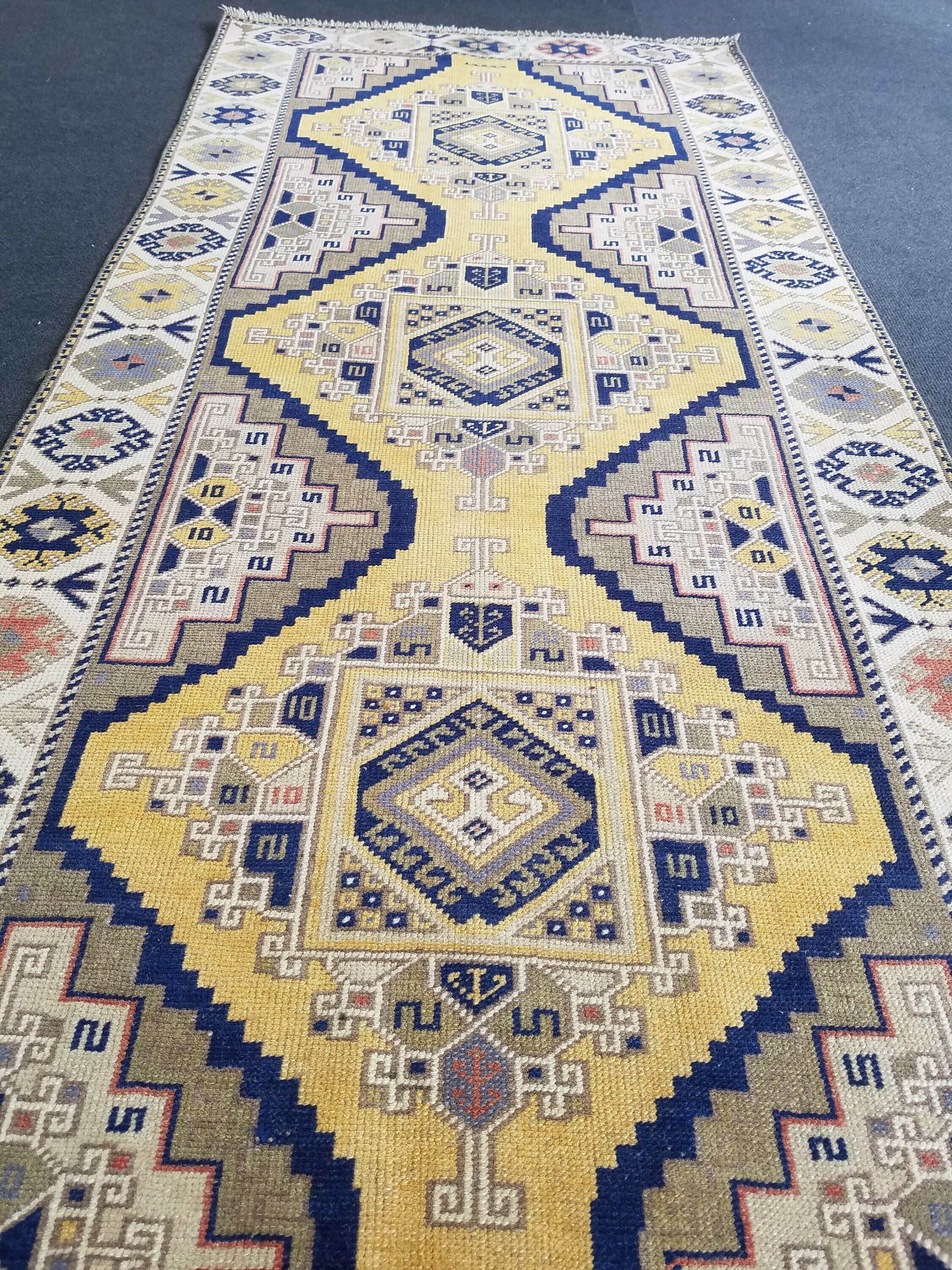 3x12 vintage handmade wool runner, oushak runner, hallway runner rug, kitchen runner
