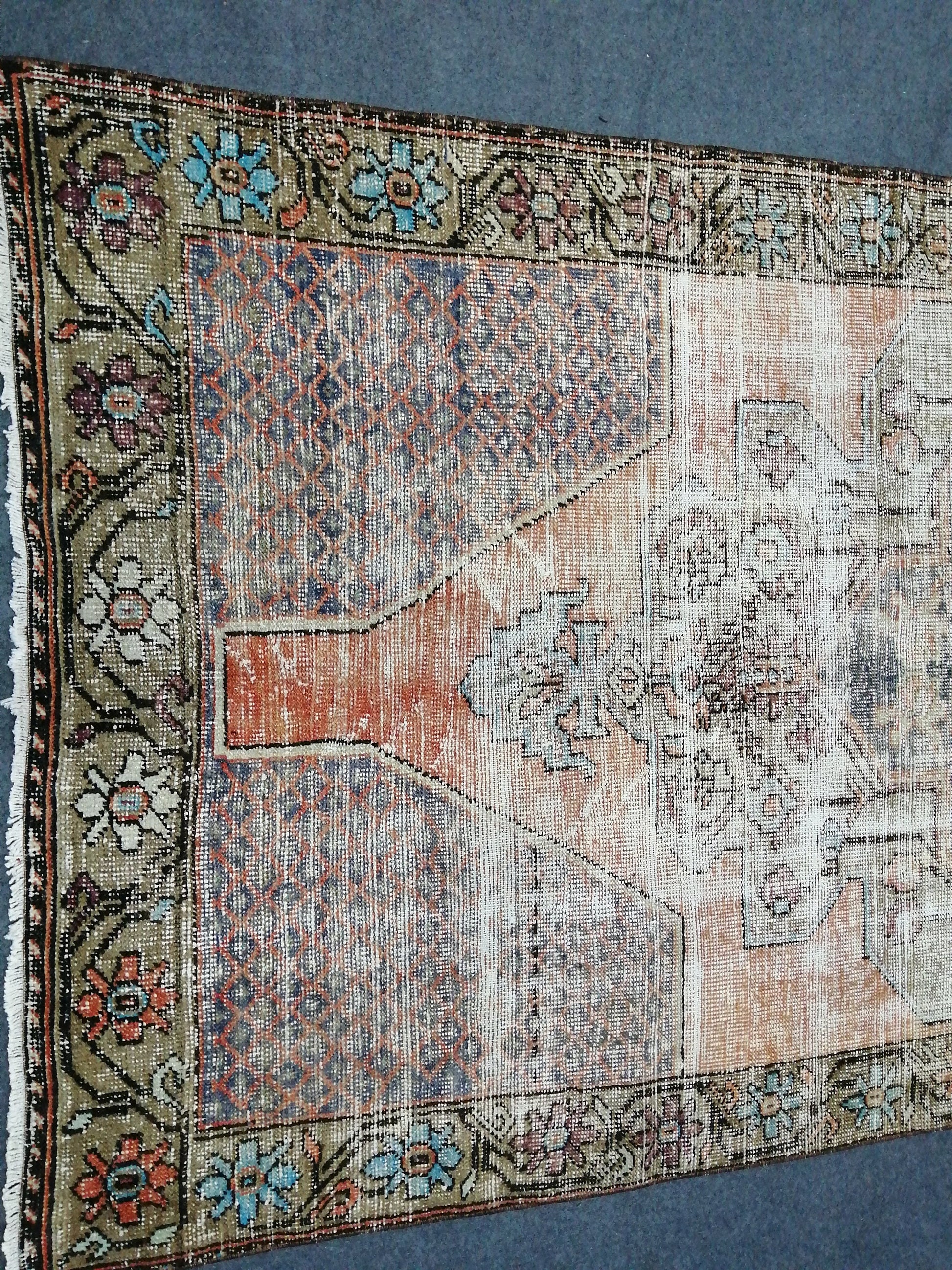*A vintage handmade Turkish rug made of hand spun wool and double knotted on sturdy foundation,