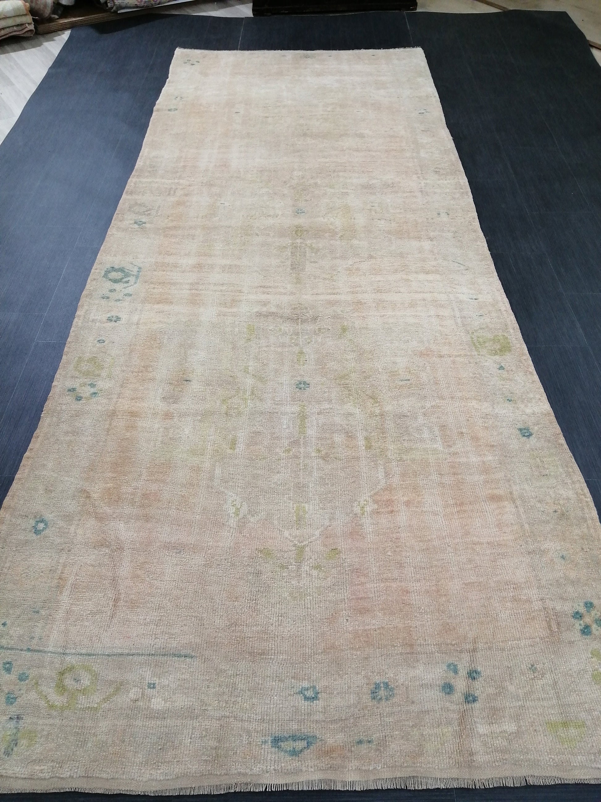4.6 x 11.5 Muted Wool Runner Rug Muted Oushak Runner Rug Turkish Runner Rug Vintage Runner Rug Hallway Runner Rug Kitchen Runner Rug