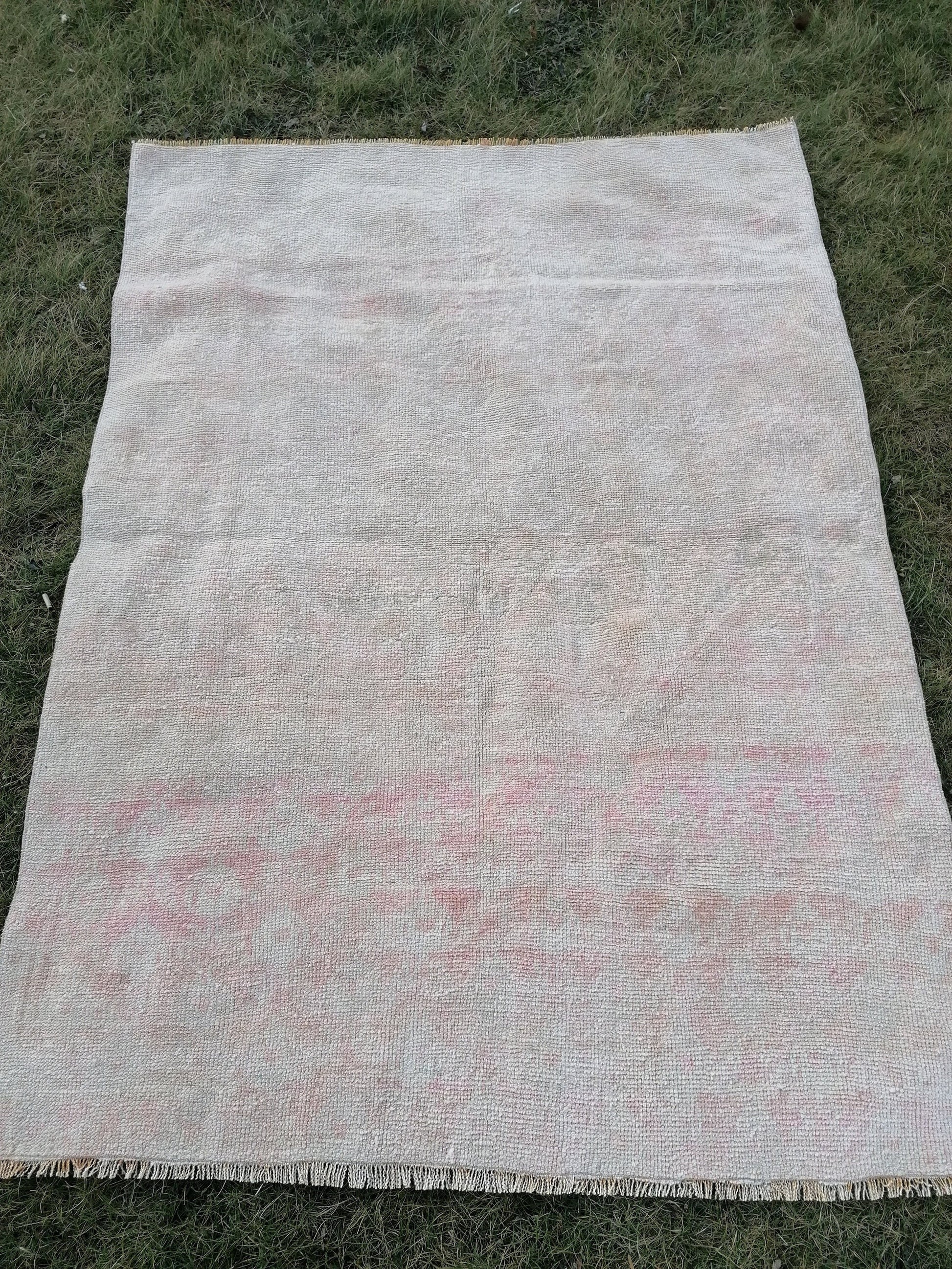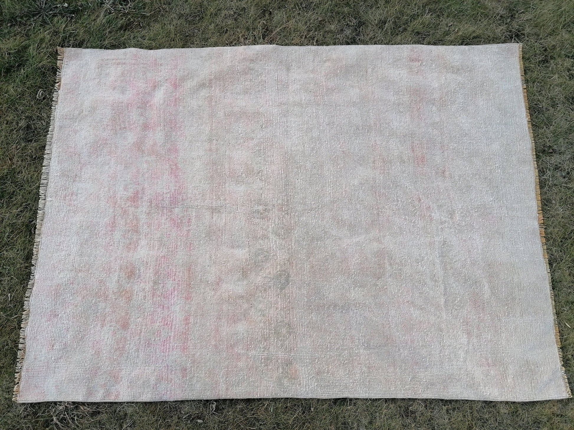 4.6 x 6.3 Turkish rug vintage wool rug turkish rug, vintage anatolian rug, oushak unique handmade rug