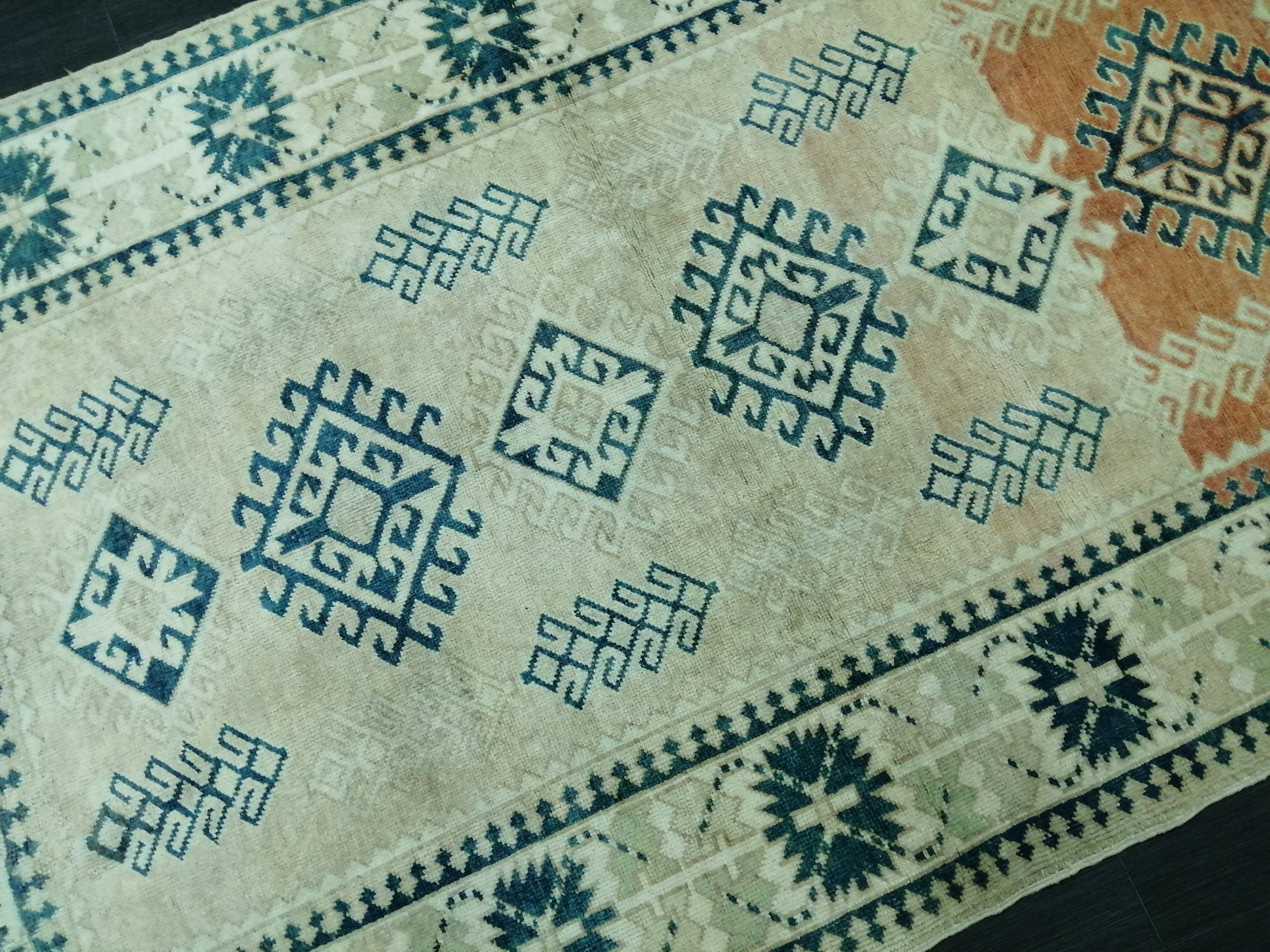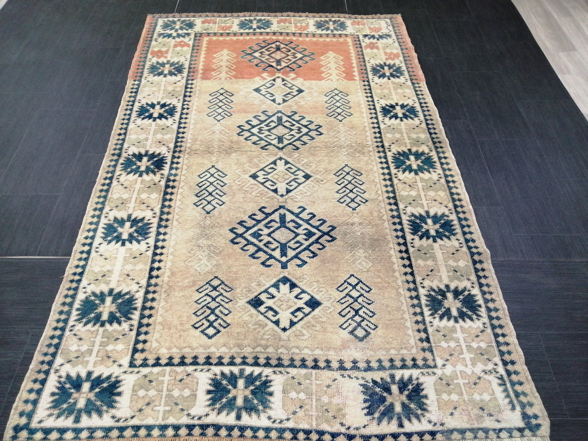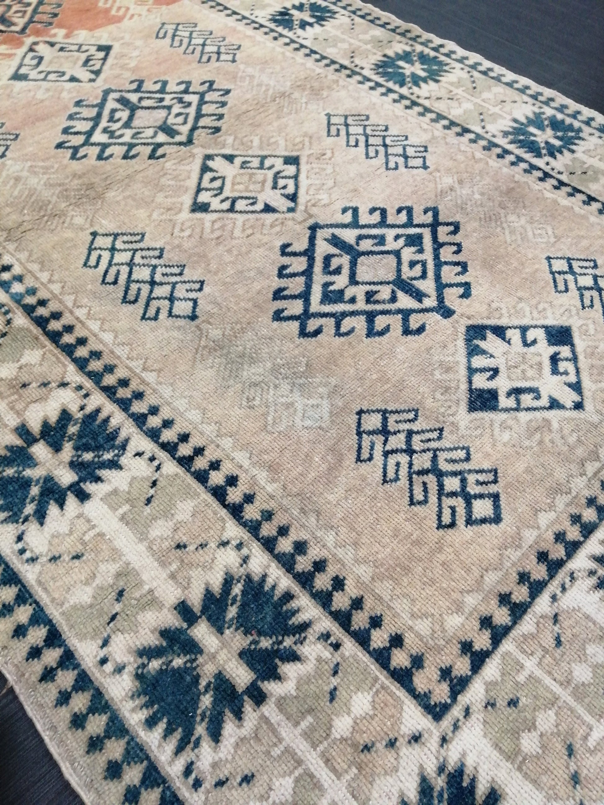 *A vintage handmade Turkish rug made of hand spun wool and double knotted on sturdy foundation,