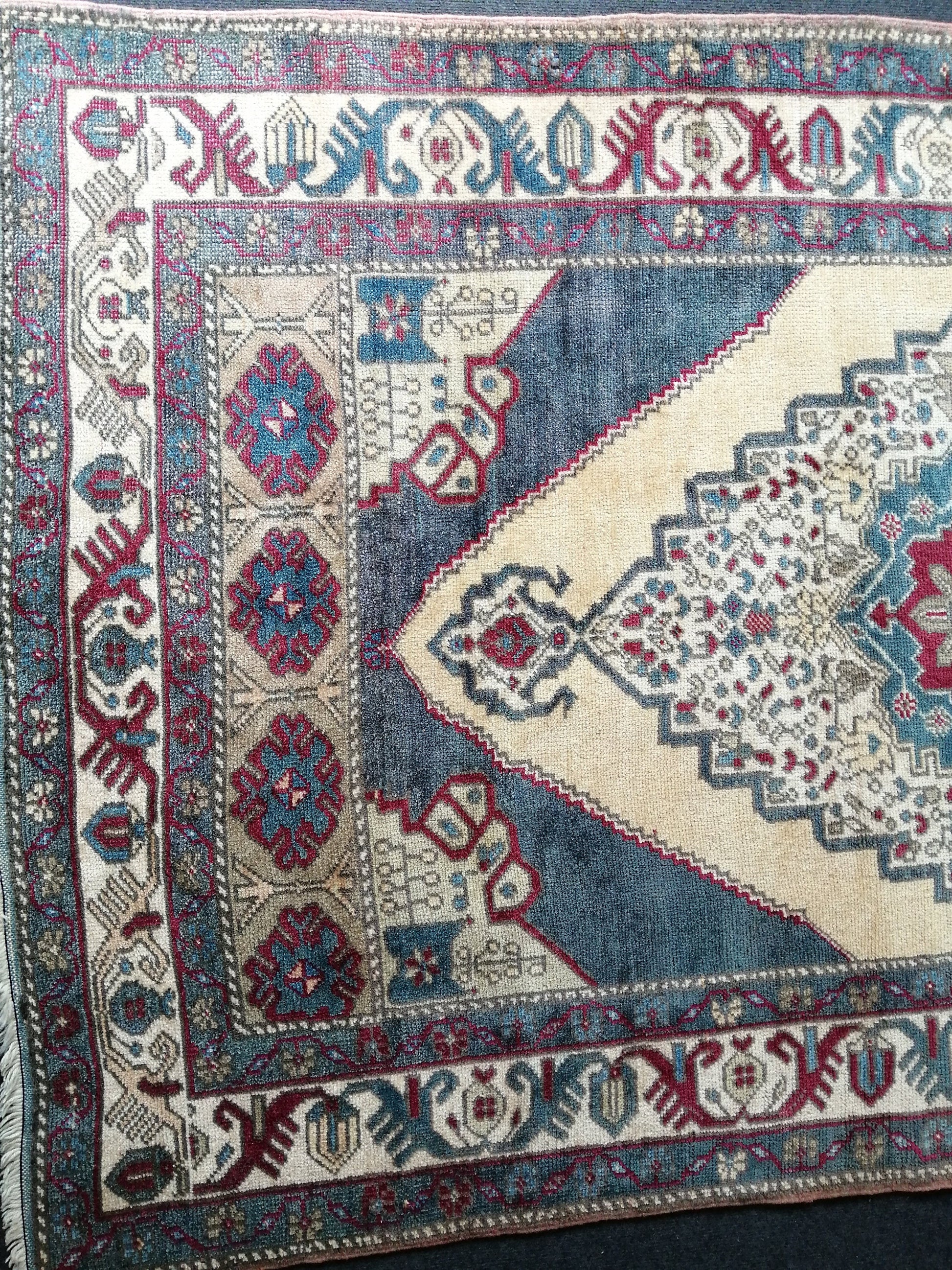 *A vintage handmade Turkish rug made of hand spun wool and double knotted on sturdy cotton foundation,
