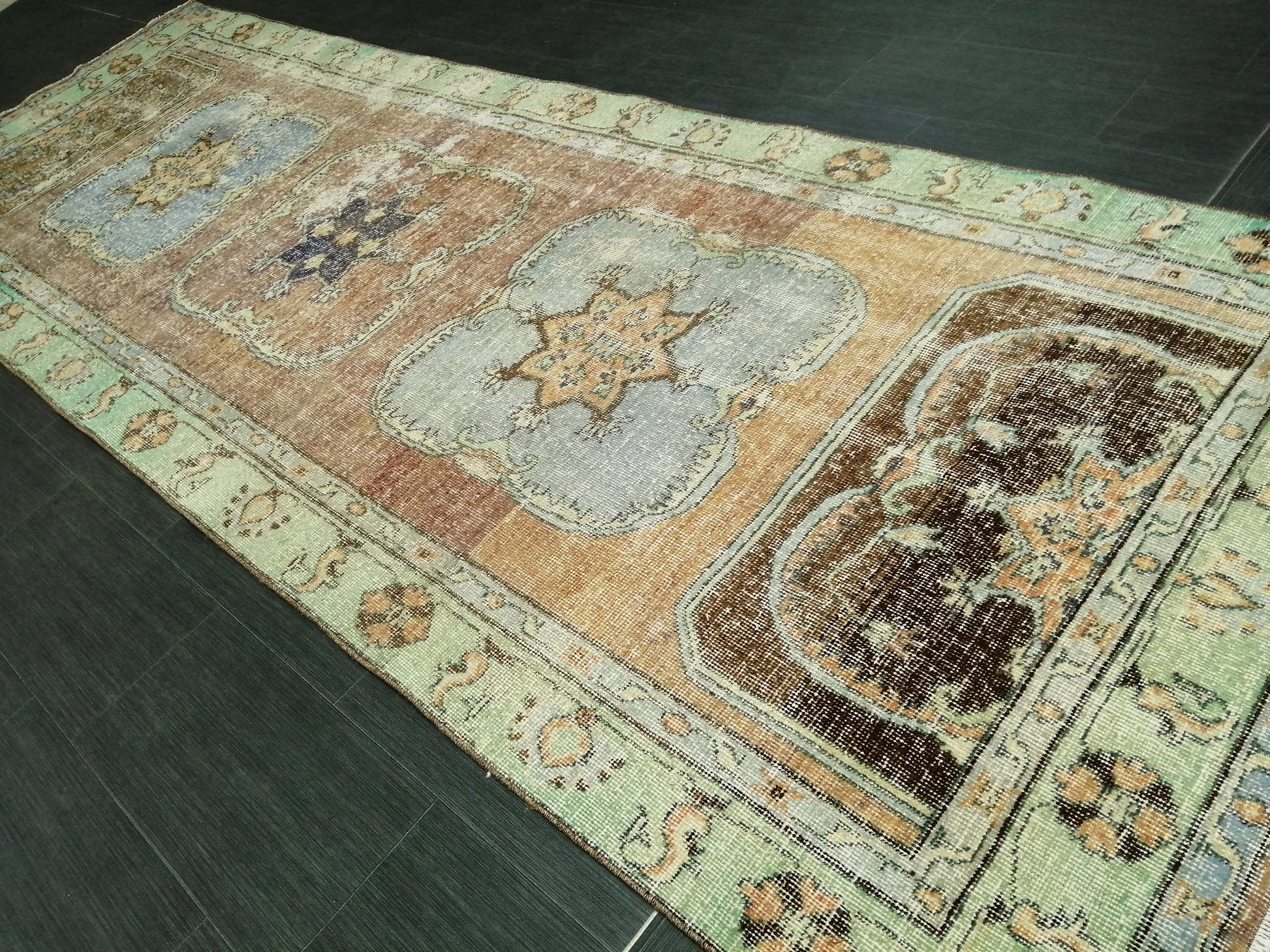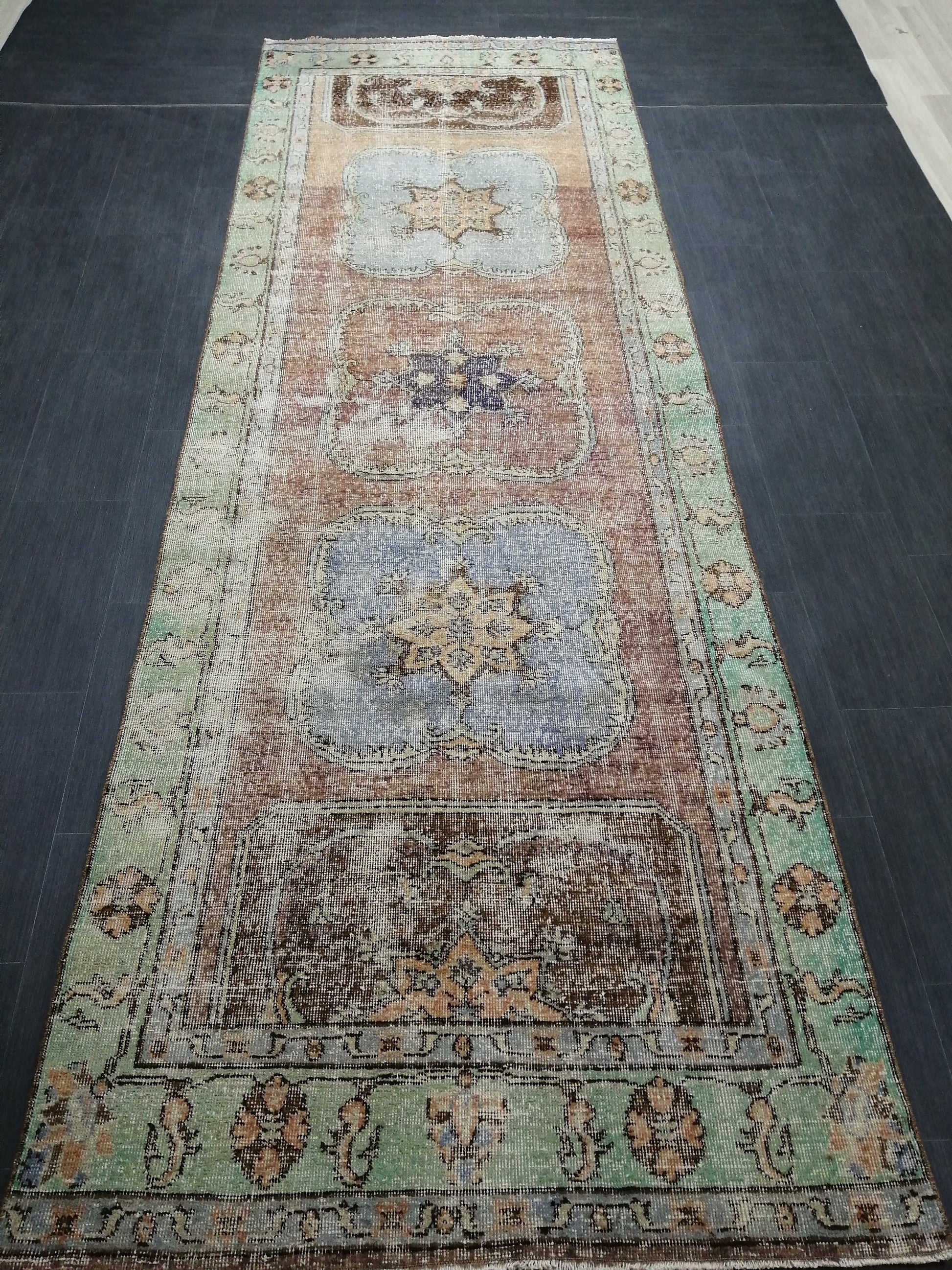 4 x 11.7 Distressed Oushak Runner Rug Turkish Runner Rug Vintage Runner Rug Hallway Runner Rug Kitchen Runner Rug Wool Runner Rug Oushak Rug