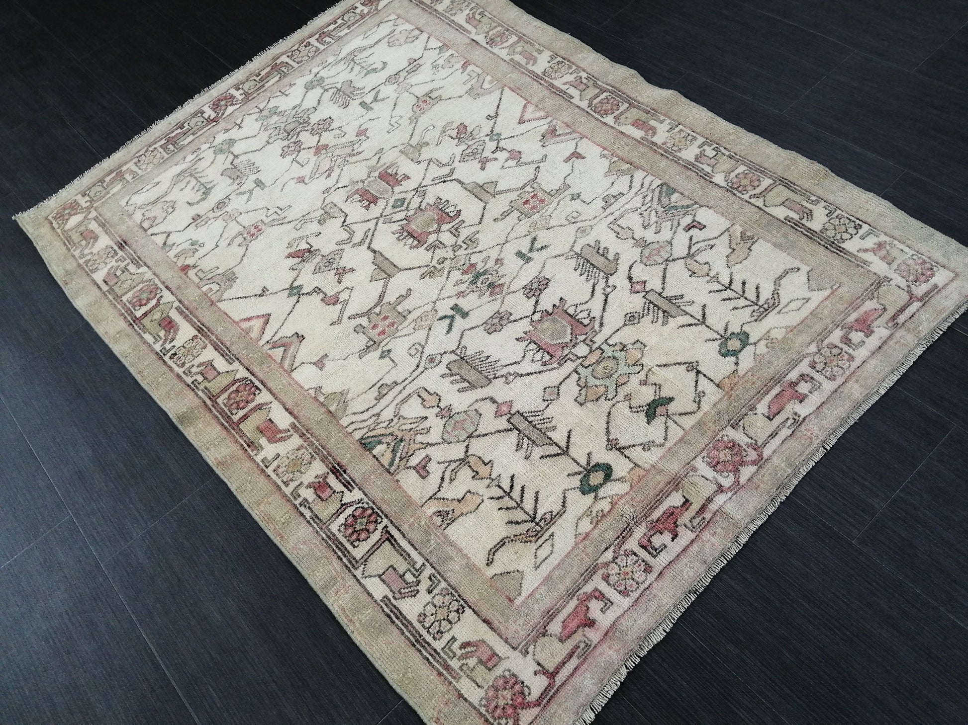 4 X 5 OUSHAK RUG Wool TURKISH Oushak Rug Vintage Oushak Runner Rug Vintage Hand Made Rugs Vintage Turkish Rug