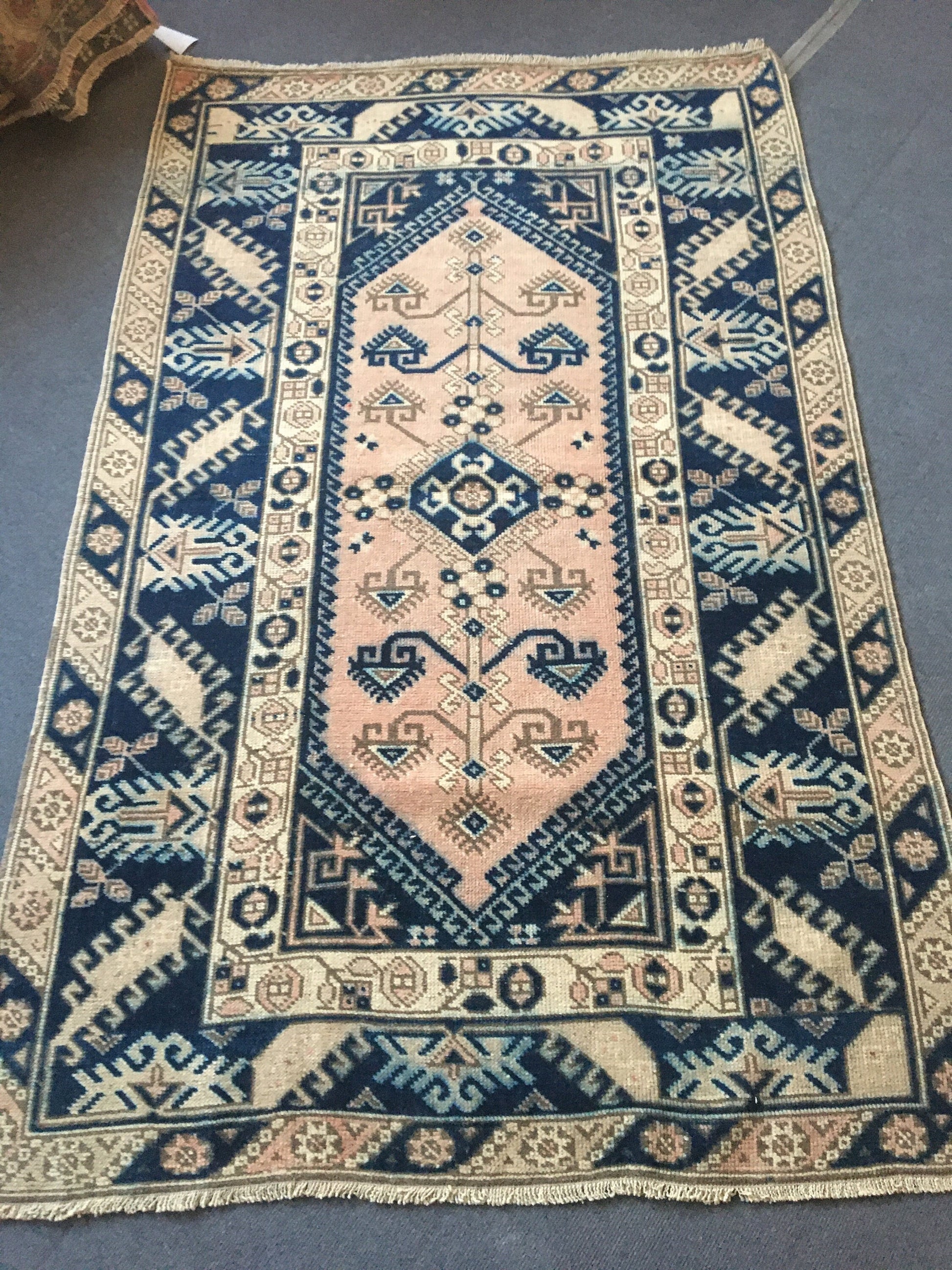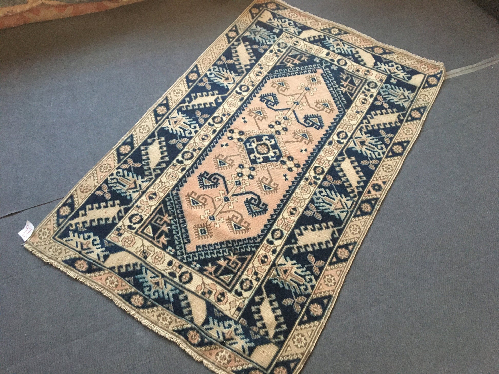 4x6 feet handmade blue turkish rug, vintage muted oushak bedroom rug, large bathroom floor rug, kitchen area wide rug,laundry large wool rug
