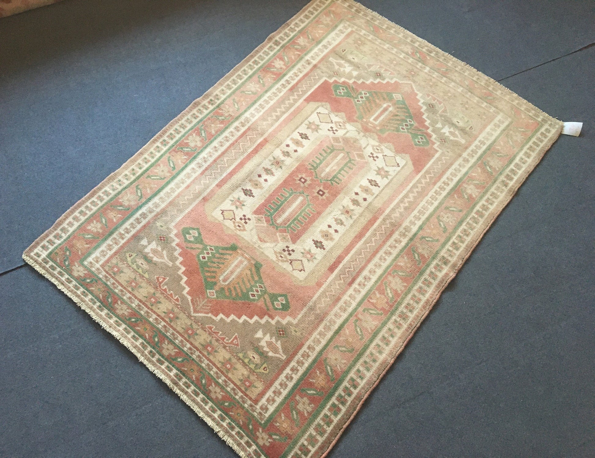 Muted Soft Colors Rug Vintage Rug Turkish Oushak Rug Rustic Unsual Tribal Rug Retro Style Rug Traditional Turkish Design