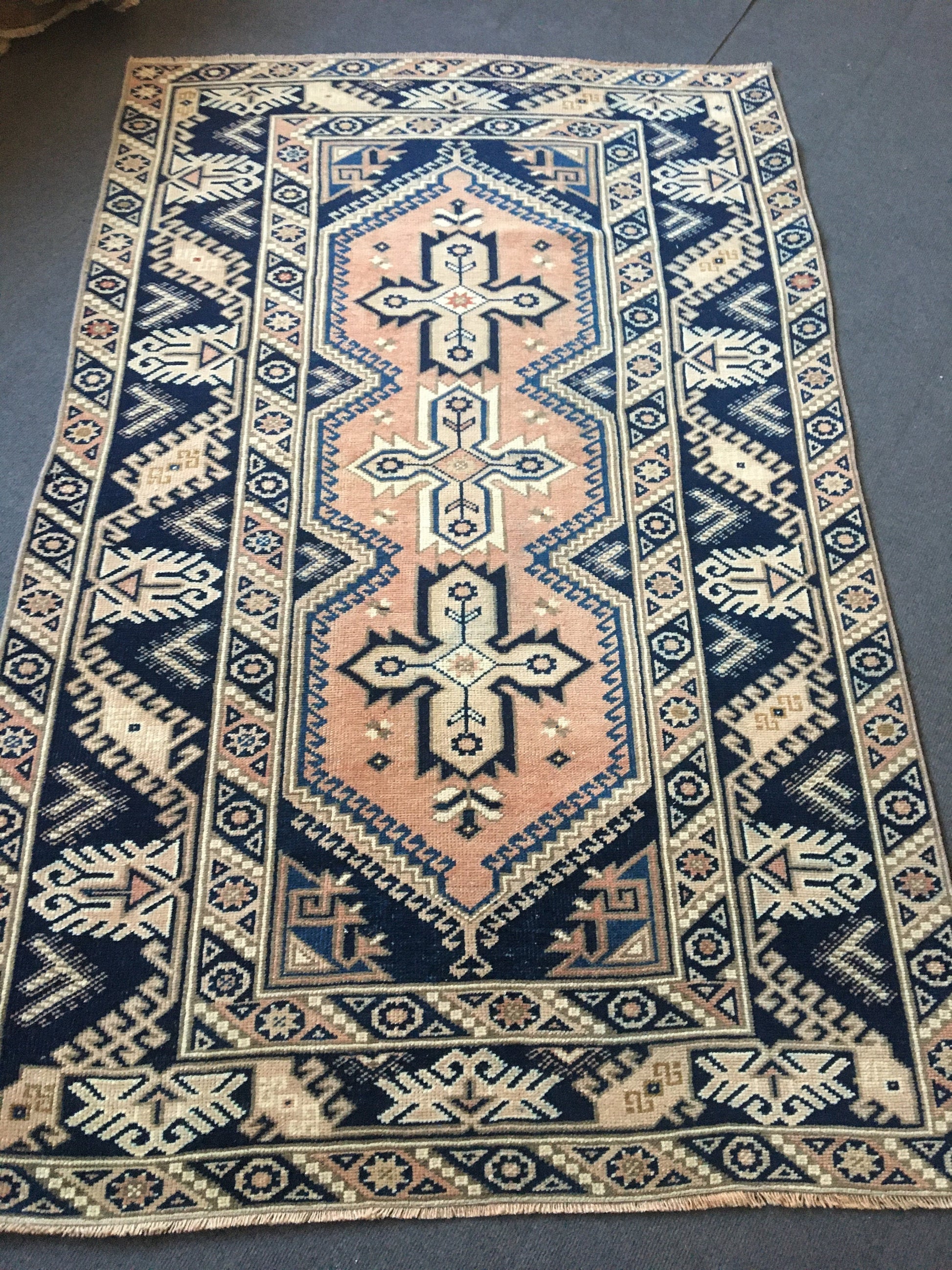 4x6 feet wool blue oushak bathroom floor rug, turkish anatolian large bedroom rug, vintage kitchen area rug, wide dining room rug, muted rug