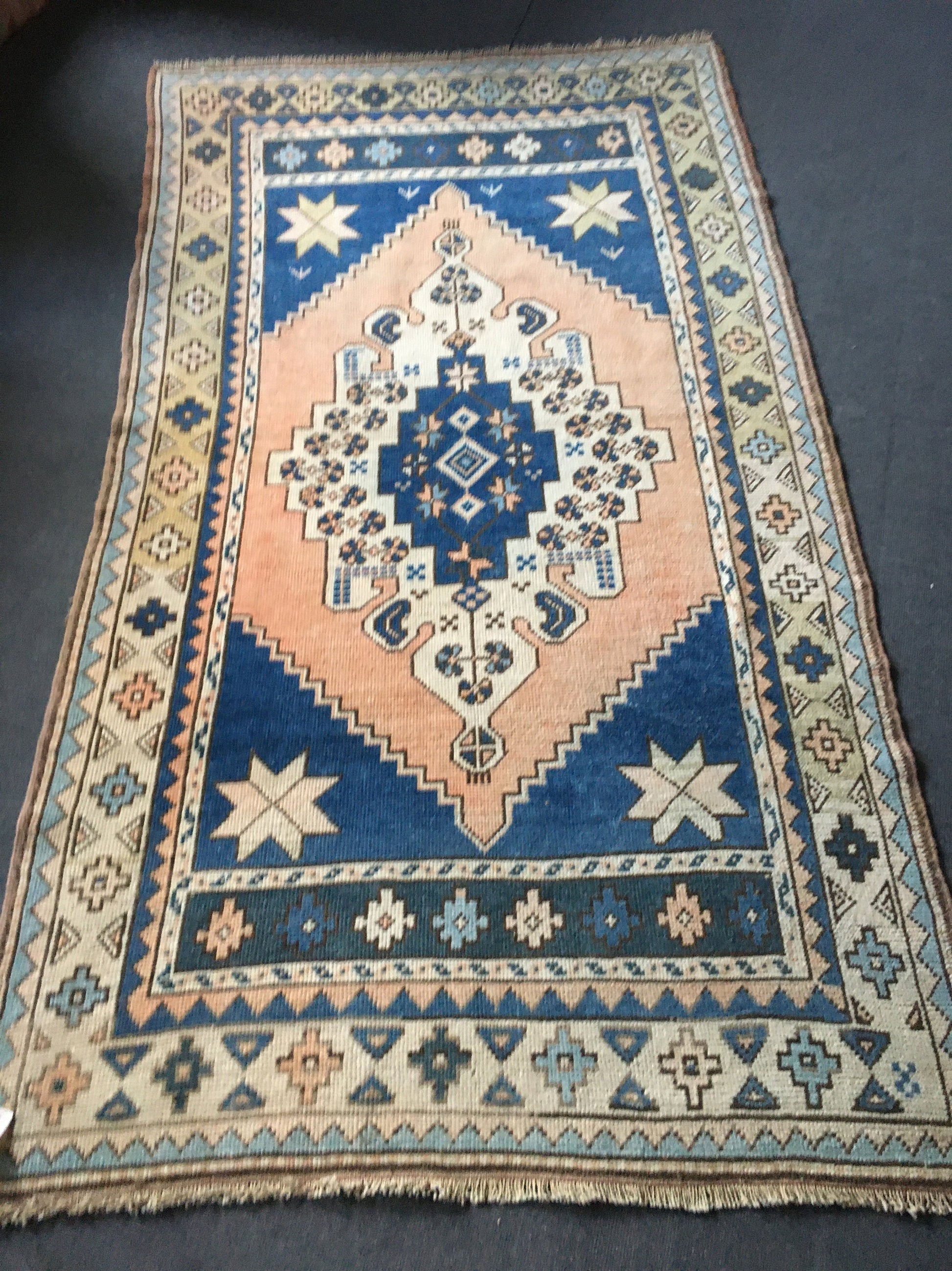 4x7.6 feet handmade blue kitchen floor rug, vintage living room area rug, pink turkish bedroom rug, oushak bathroom rug, wool bohemian rug