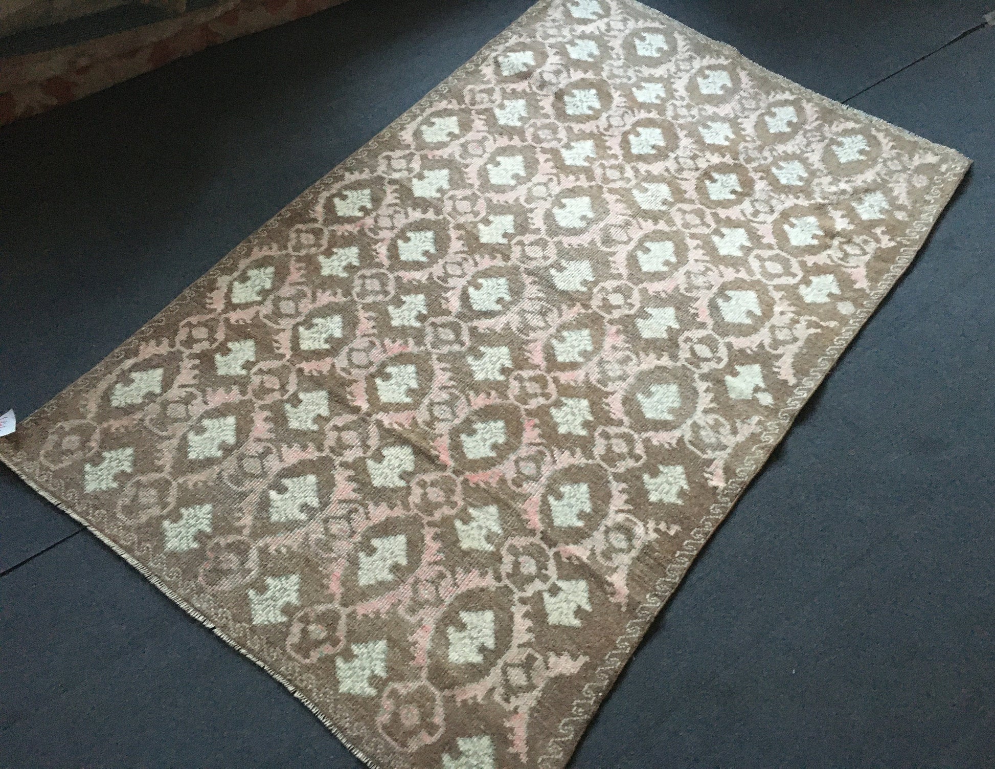 4x7 feet natural brown turkish bedroom rug, vintage pink living room floor rug, oushak handmade wide bathroom rug, laundry area medium rugs
