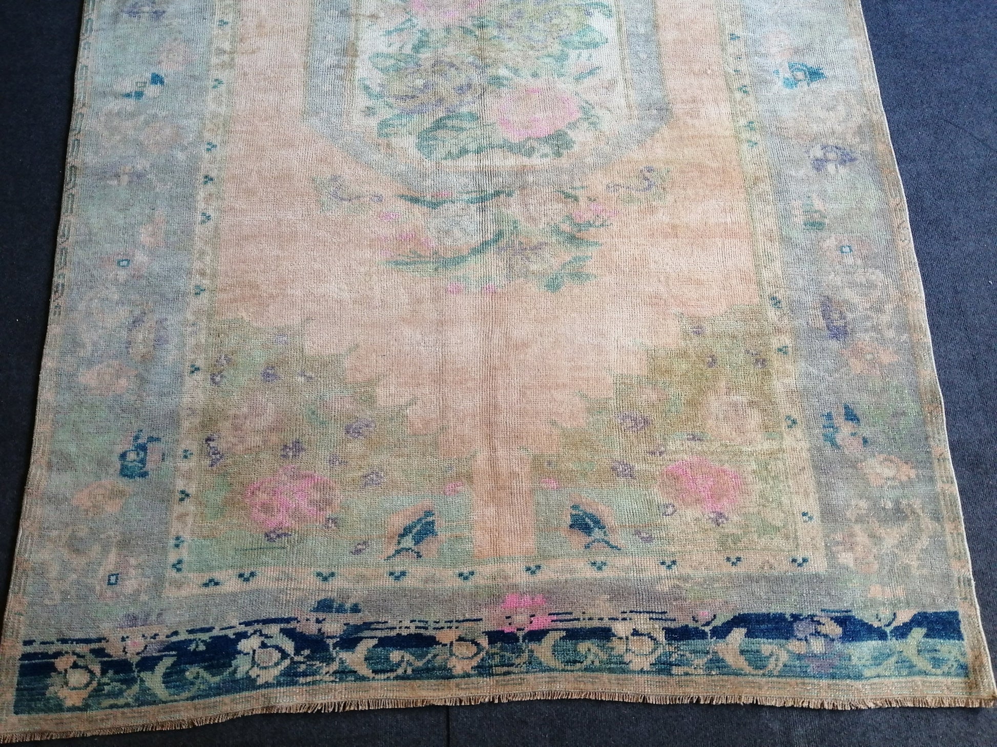 5.5 x 7.9 Floral OUSHAK RUG TURKISH Oushak Rug Vintage Hand Knotted Rug Muted Wool Rug Hand Made Rugs Vintage Faded Rug