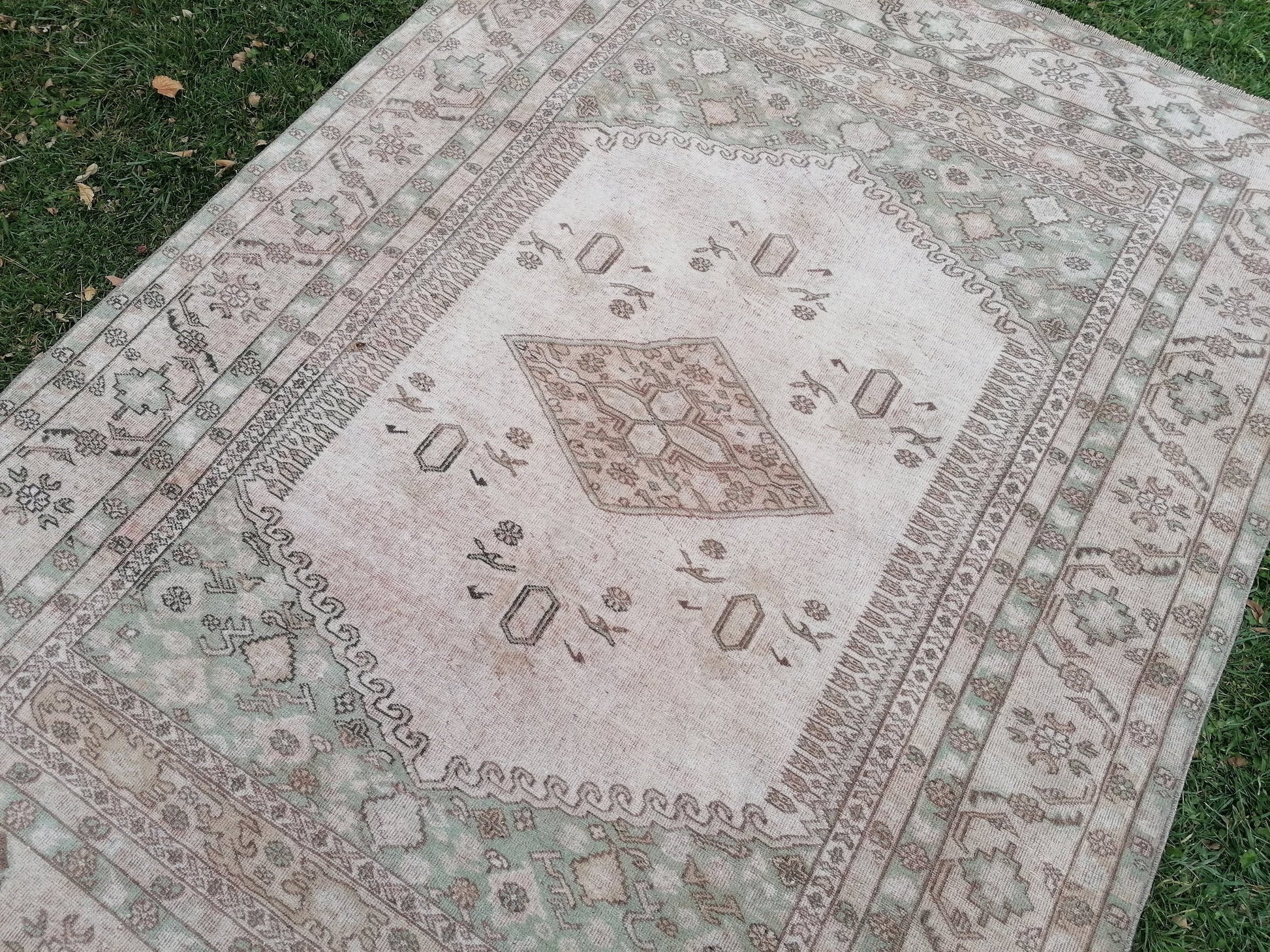 5.6 x 7.6 oushak wool rug large muted turkısh rug, neutral vıntage handmade rug,