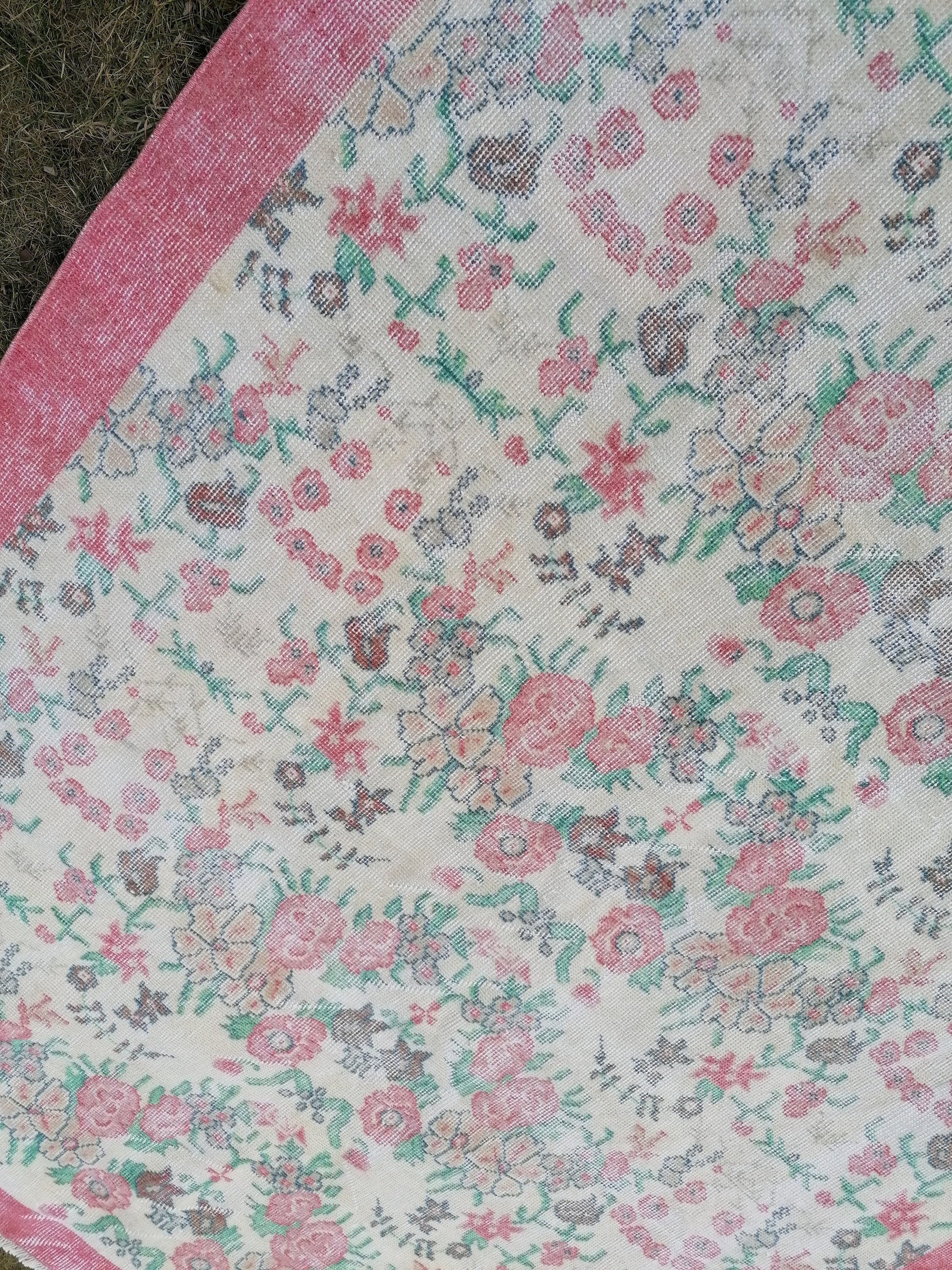 5.6 x 9.3 Turkish pink rug, vintage turkish rug, oushak vintage rug,