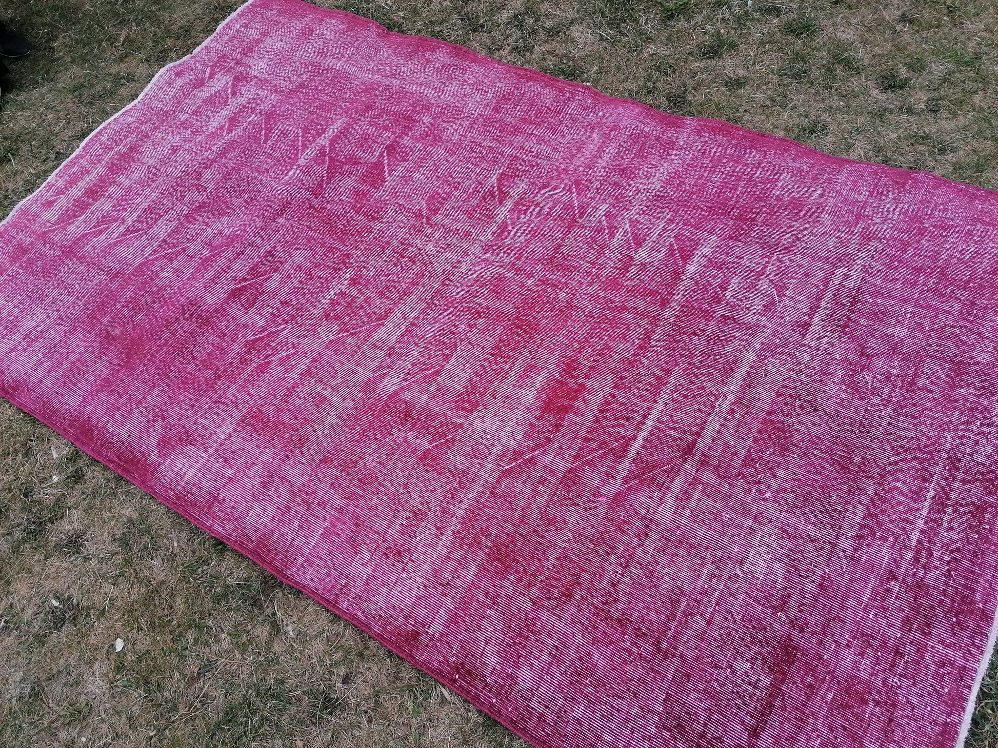 5.7 x 9 turkish rug, vintage pink rug, vintage oushak rug unique hand made rug kitchen rug