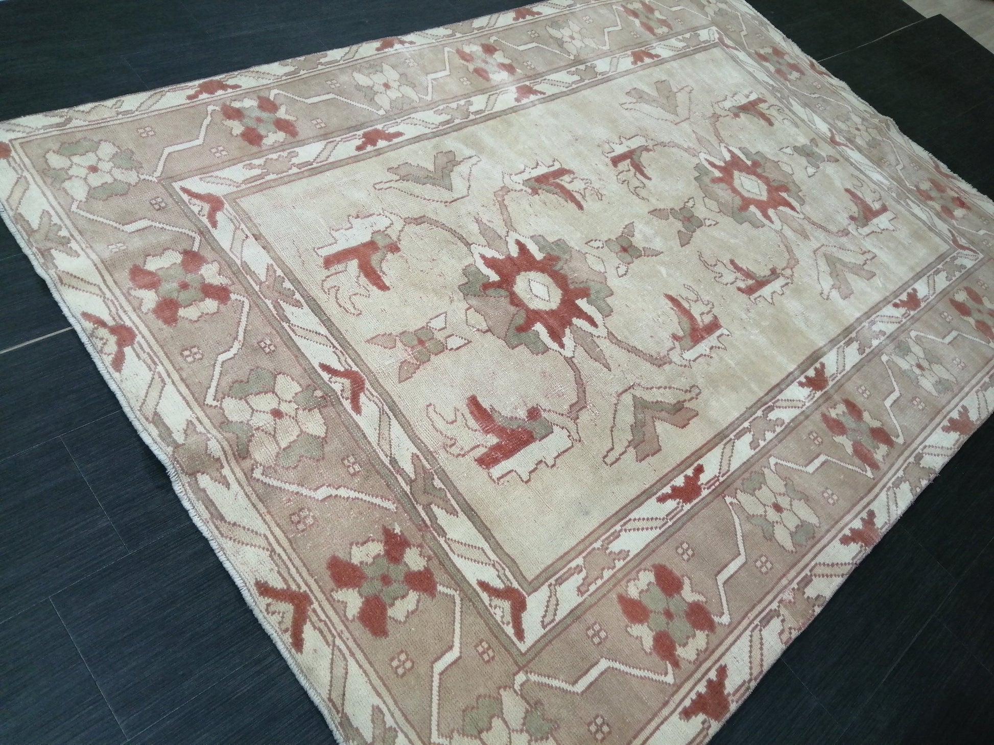 5.9 X 8.6 OUSHAK RUG TURKISH Oushak Rug Vintage Oushak Runner Rug Vintage Runner Rug Wool Oushak Rug Hand Made Rugs Vintage Turkish Rug
