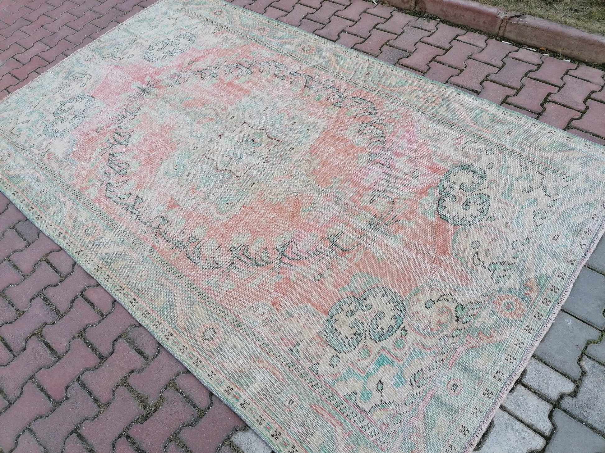 5.9 x 9.5 vintage green rug, dıstressed oushak rug turkish area rug